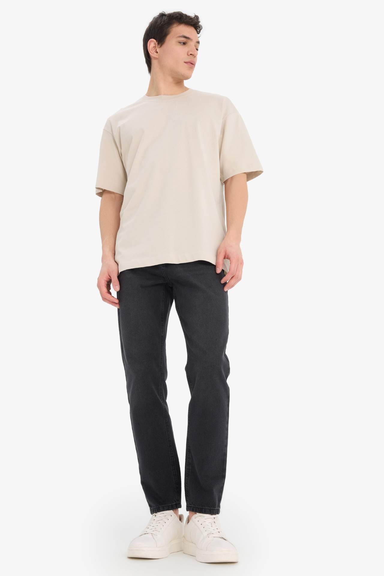 DeFacto Oversize Geniş Kalıp Bisiklet Yaka Kısa Kollu Tişört E6885AXNSBG106