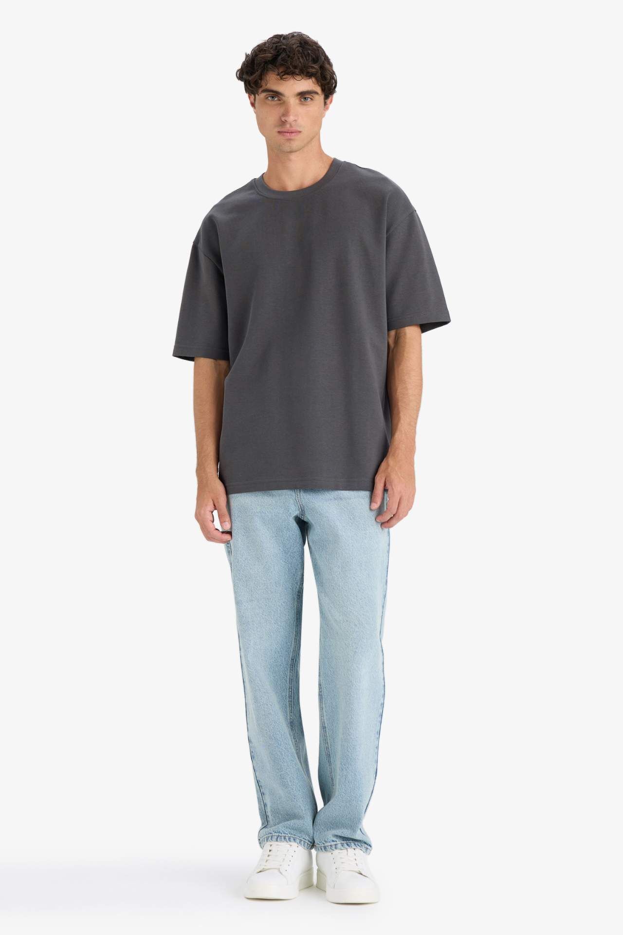 DeFacto Oversize Geniş Kalıp Bisiklet Yaka Kısa Kollu Tişört E9798AX25AUAR104