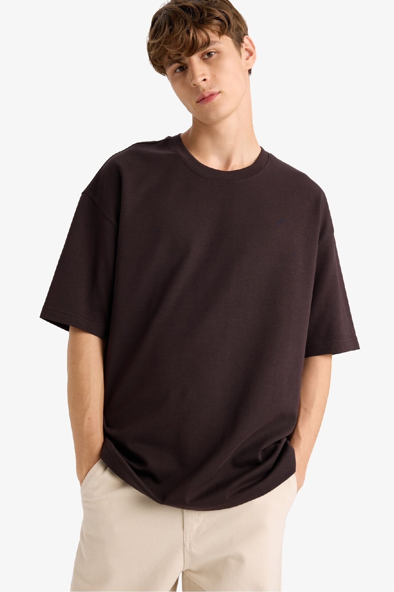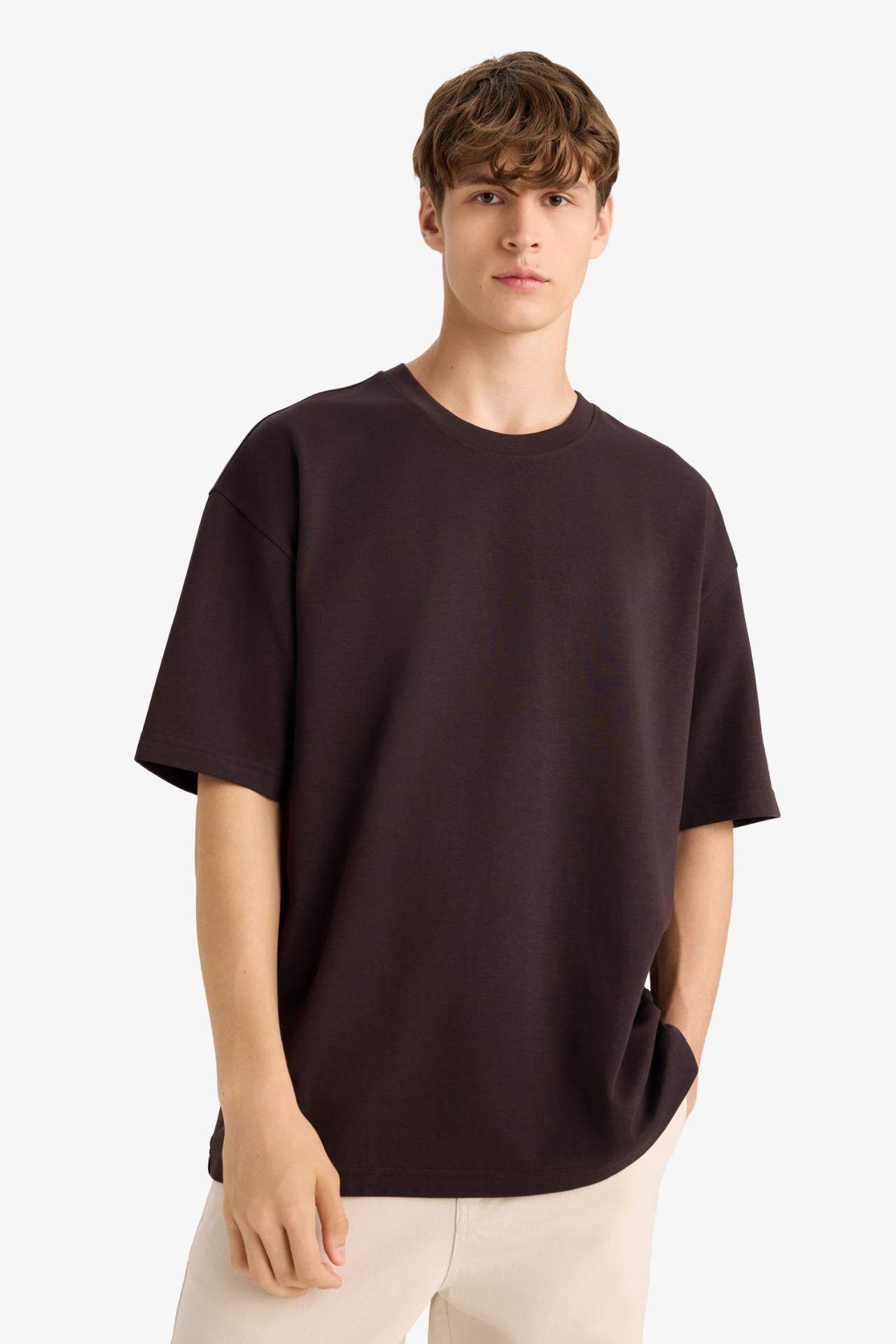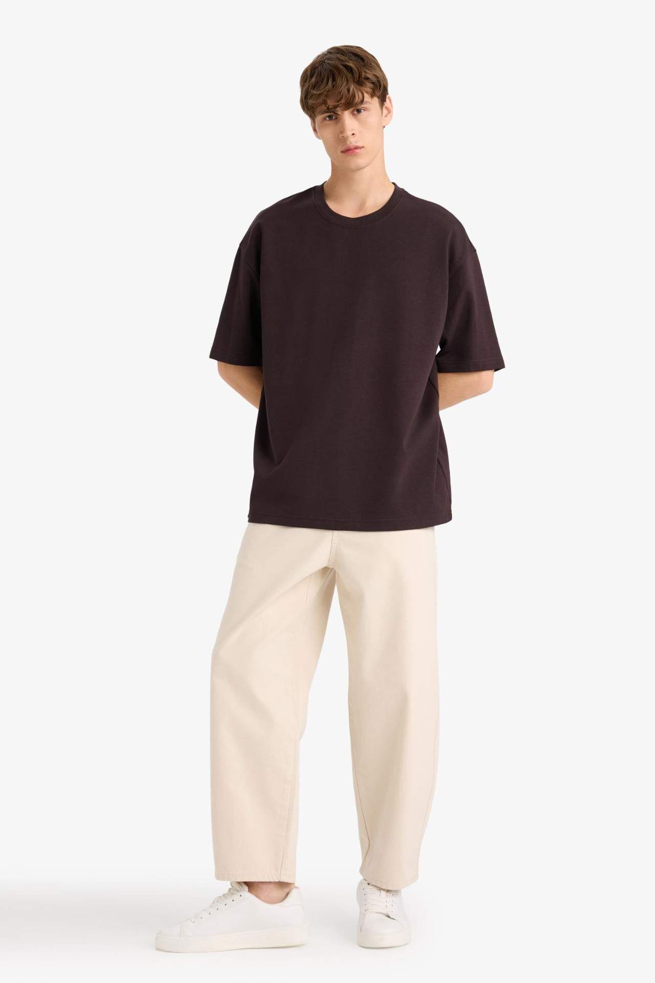 DeFacto Oversize Geniş Kalıp Bisiklet Yaka Kısa Kollu Tişört E9798AX25AUBN337