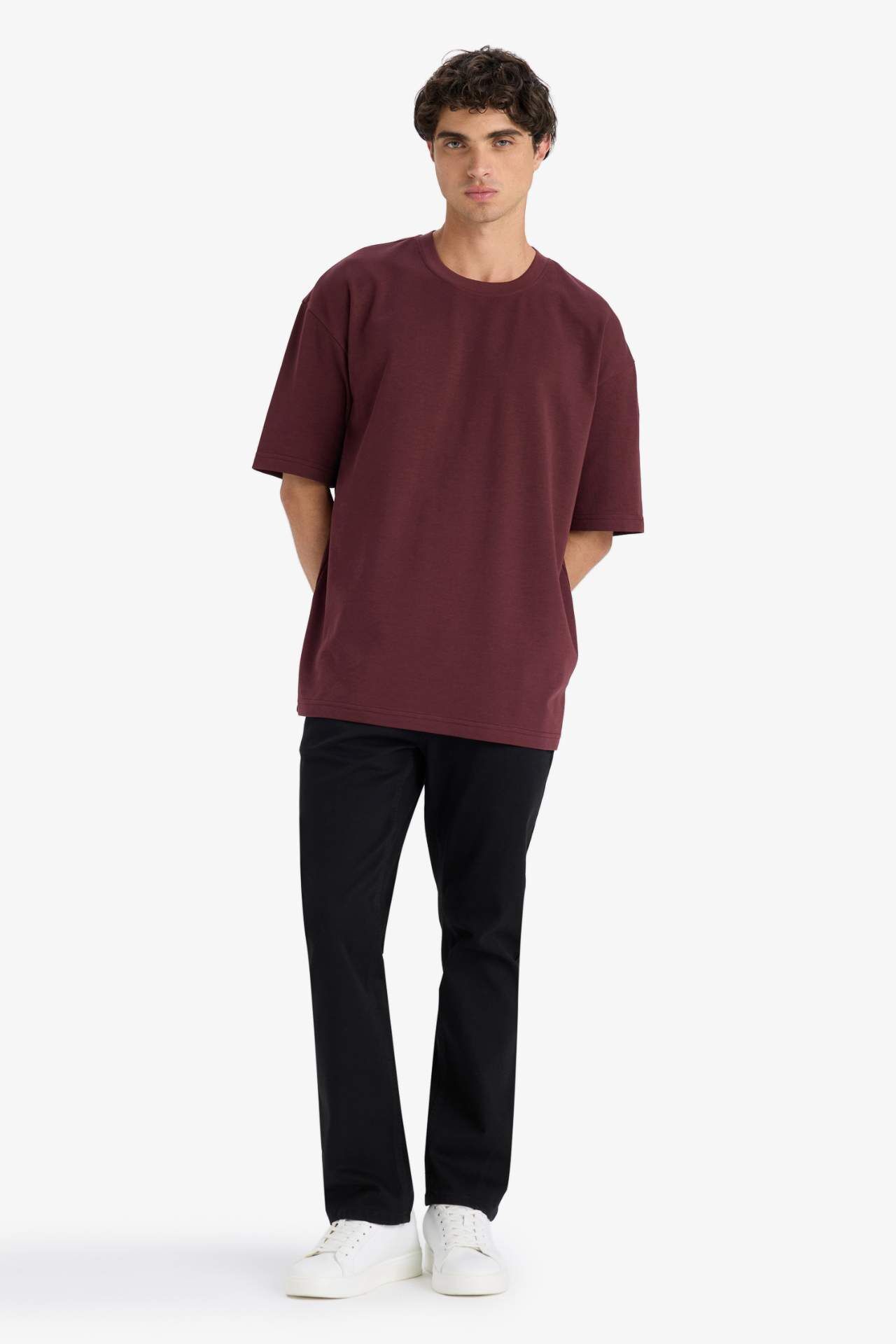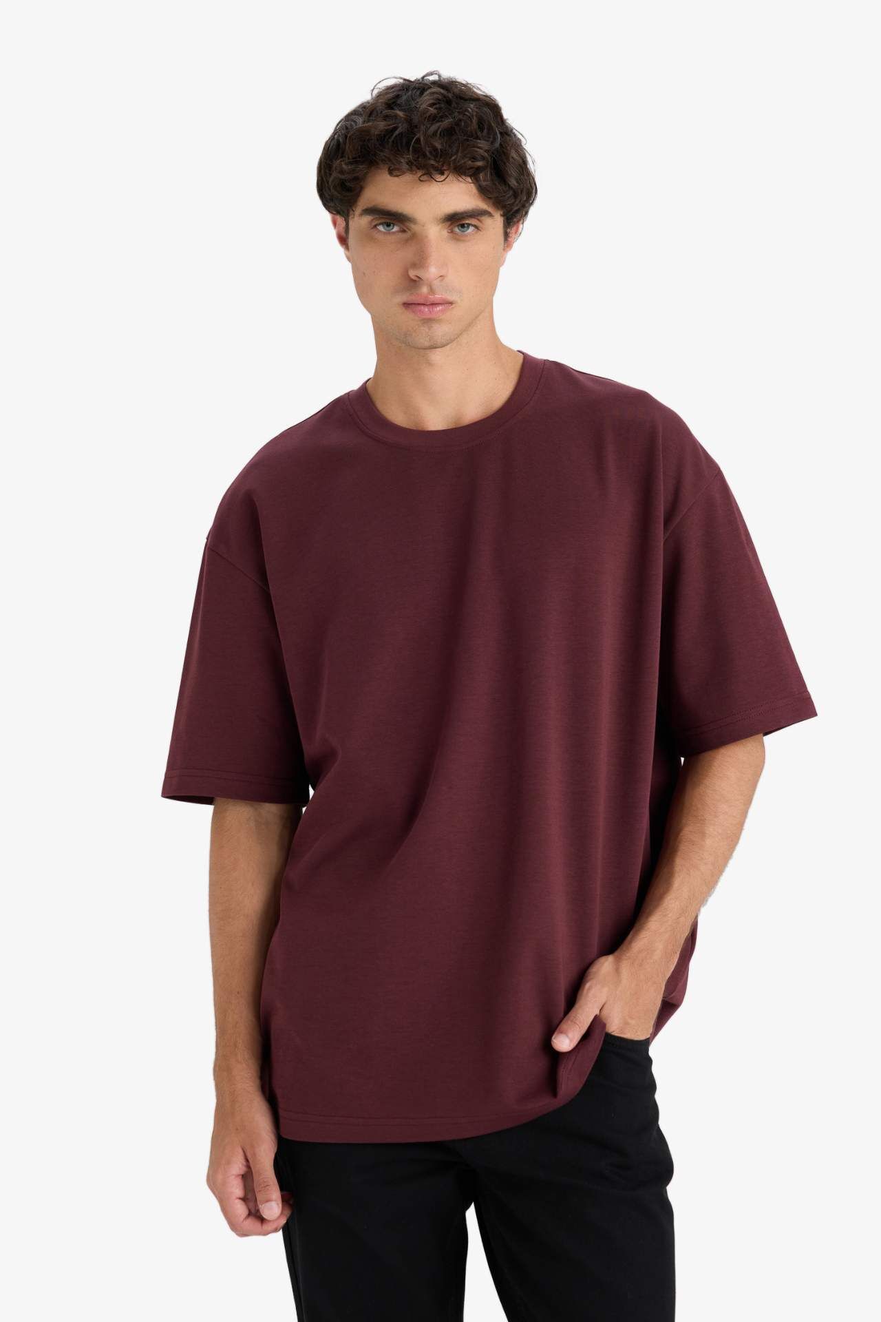 DeFacto Oversize Geniş Kalıp Bisiklet Yaka Kısa Kollu Tişört E9798AX25AUBR230