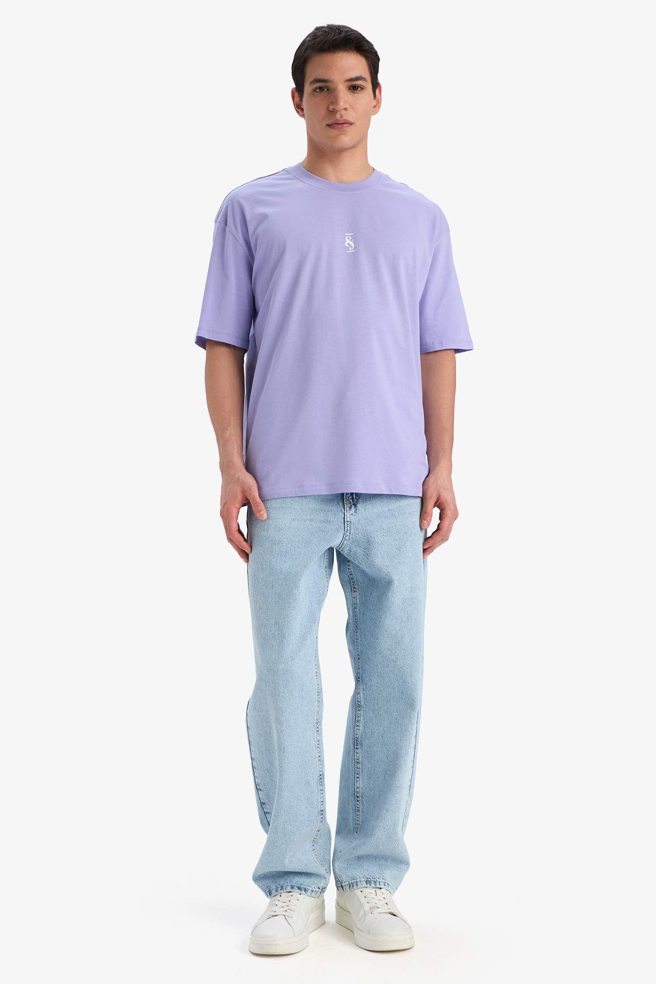 DeFacto Oversize Geniş Kalıp Bisiklet Yaka Sırt Baskılı Kısa Kollu Tişört C2134AX25SMPR479