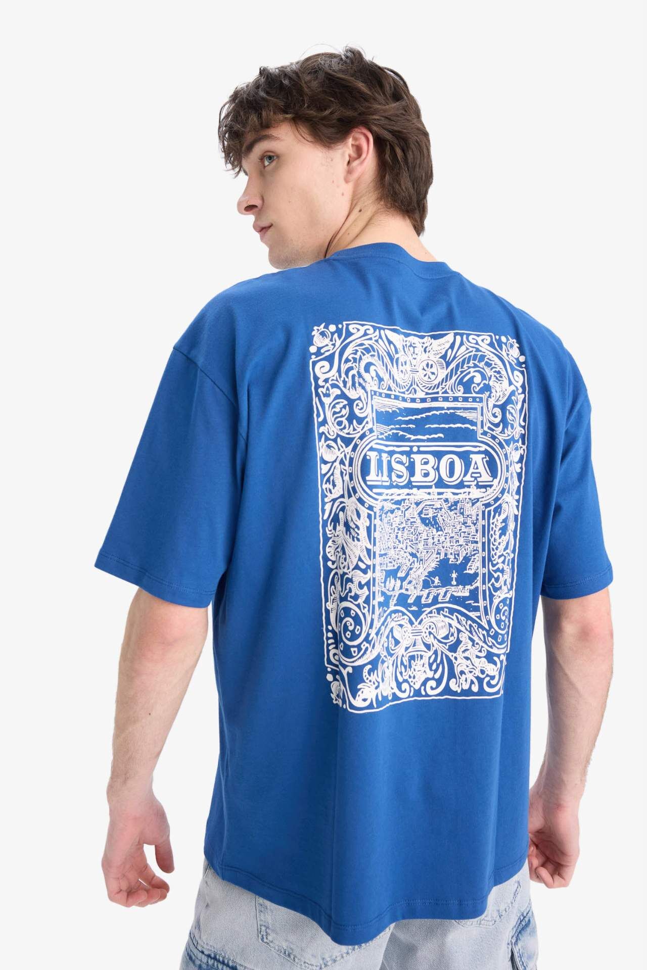 DeFacto Oversize Geniş Kalıp Bisiklet Yaka Sırt Baskılı Kısa Kollu Tişört C3628AX25SPBE815