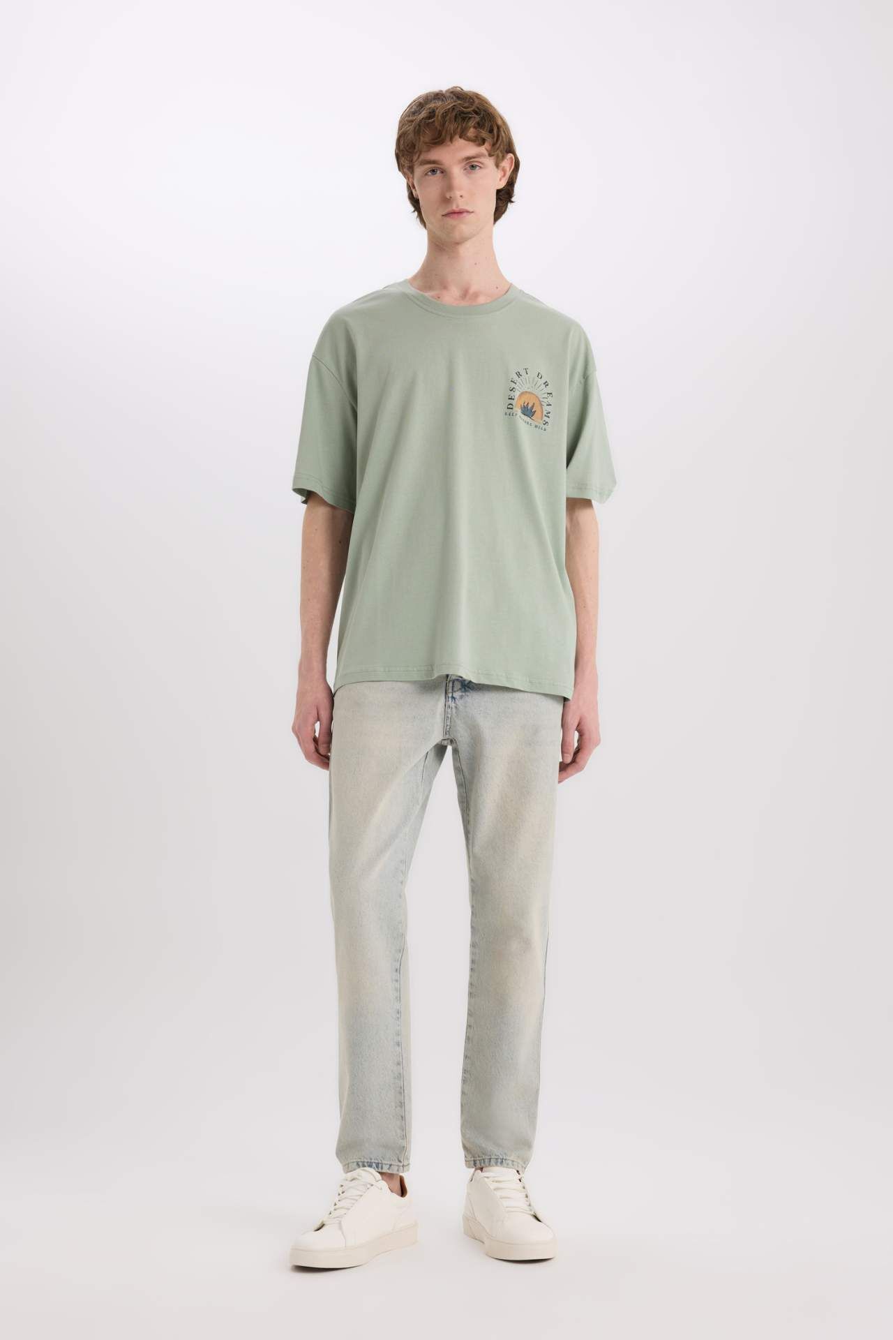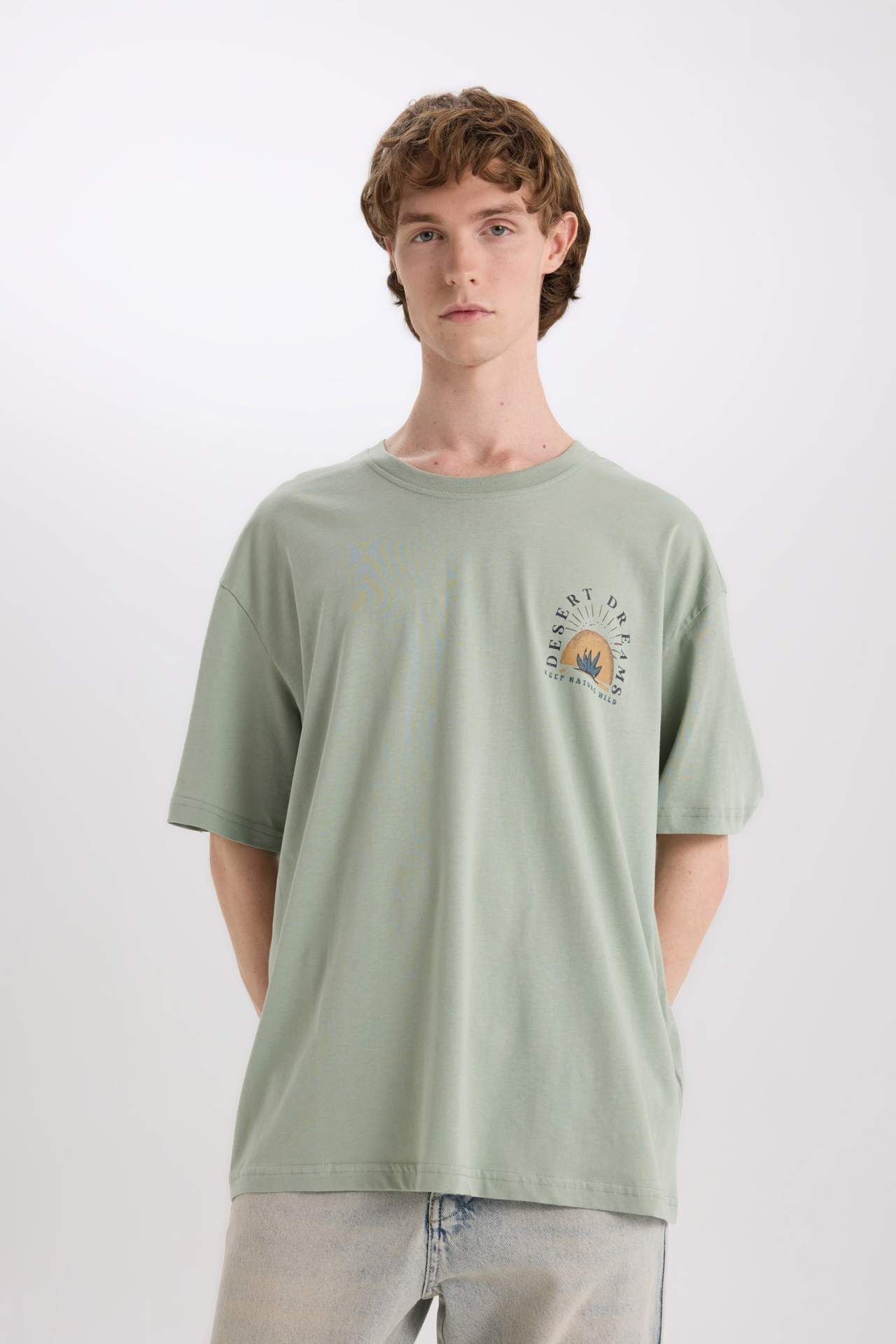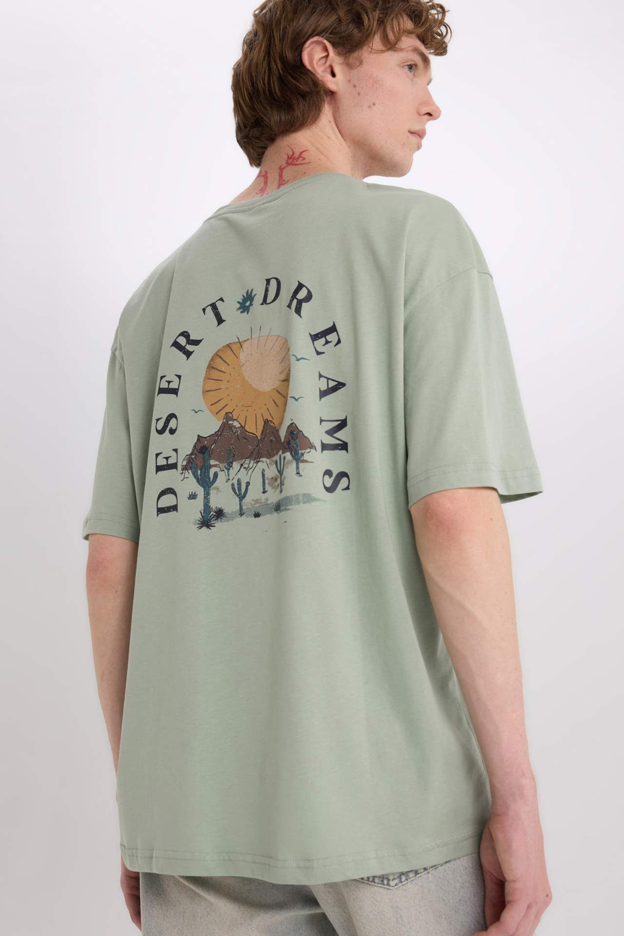 DeFacto Oversize Geniş Kalıp Bisiklet Yaka Sırt Baskılı Kısa Kollu Tişört W8282AZ25SPGN1110