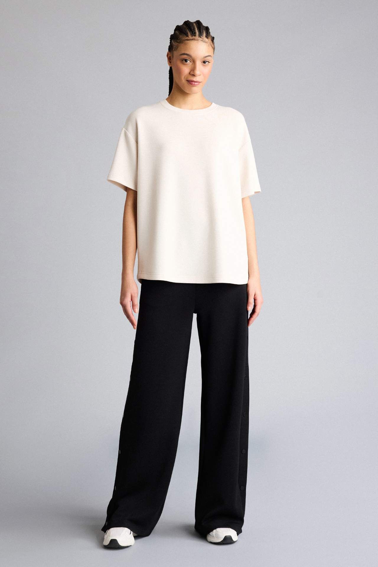 Oversıze Geniş Kalıp Bisiklet Yaka Sporcu Modal Kısa Kollu Tişört
