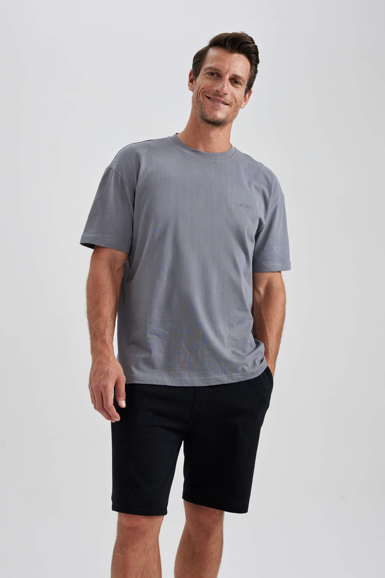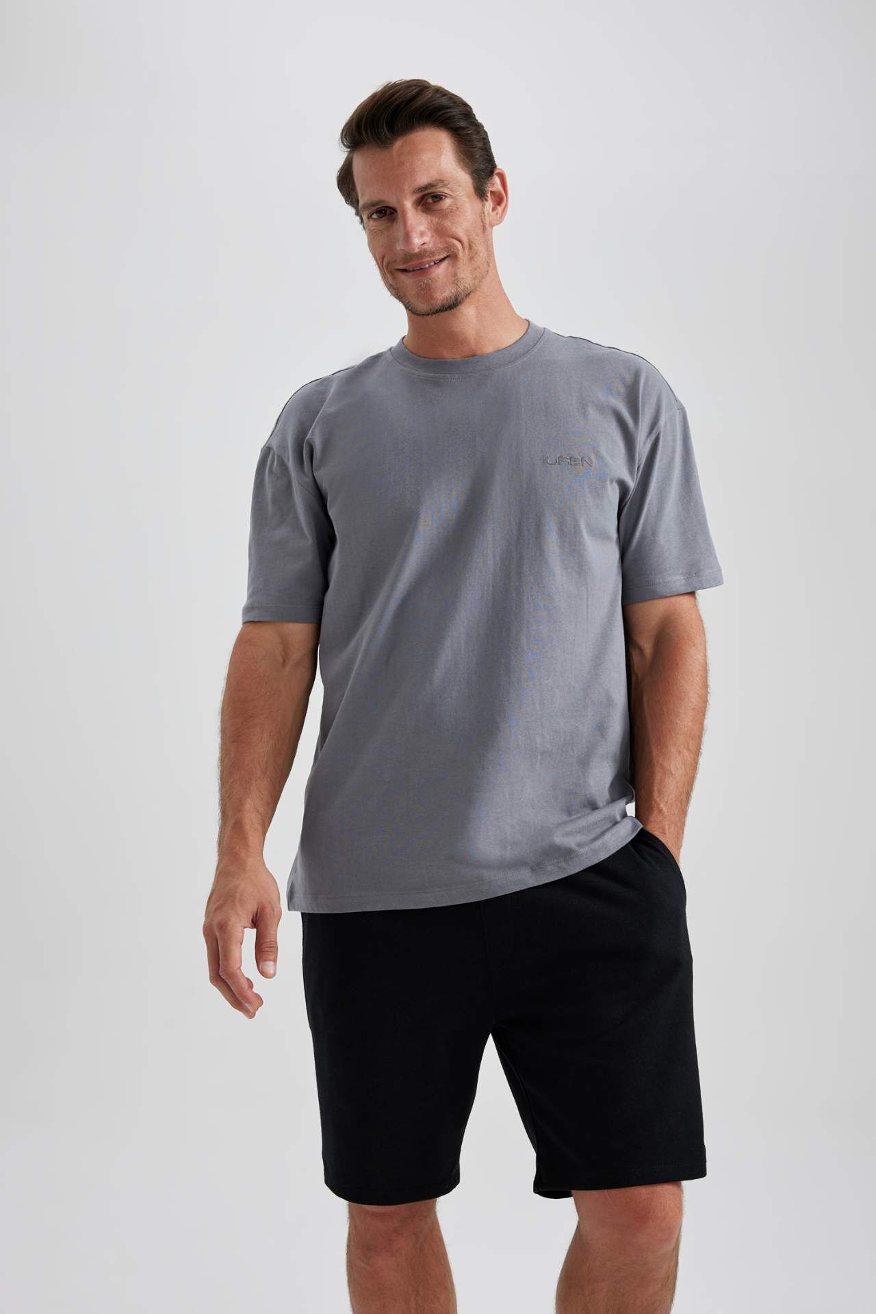 DeFacto Oversize Geniş Kalıp Bisiklet Yaka Tişört B0662AXNSGR211