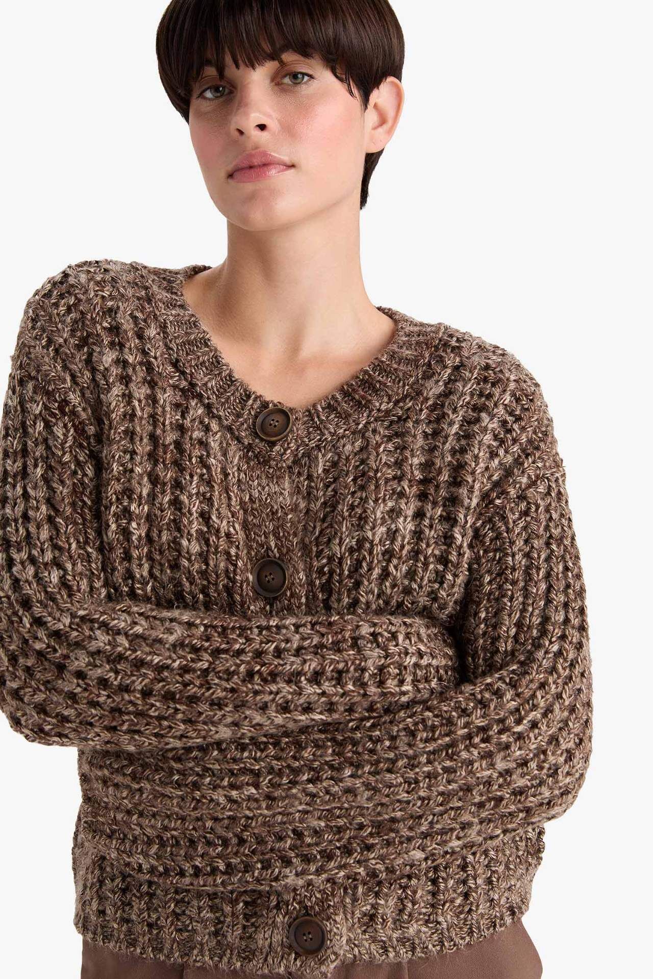 Oversize Geniş Kalıp Bisiklet Yaka Triko Hırka