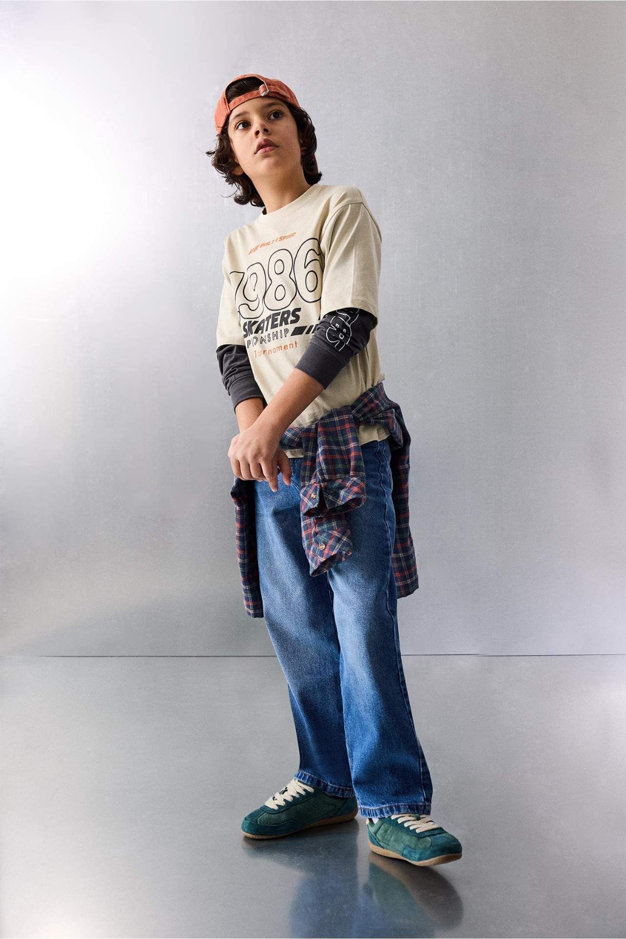 Oversıze Geniş Kalıp Bisiklet Yaka Uzun Kollu Tişört Erkek Çocuk