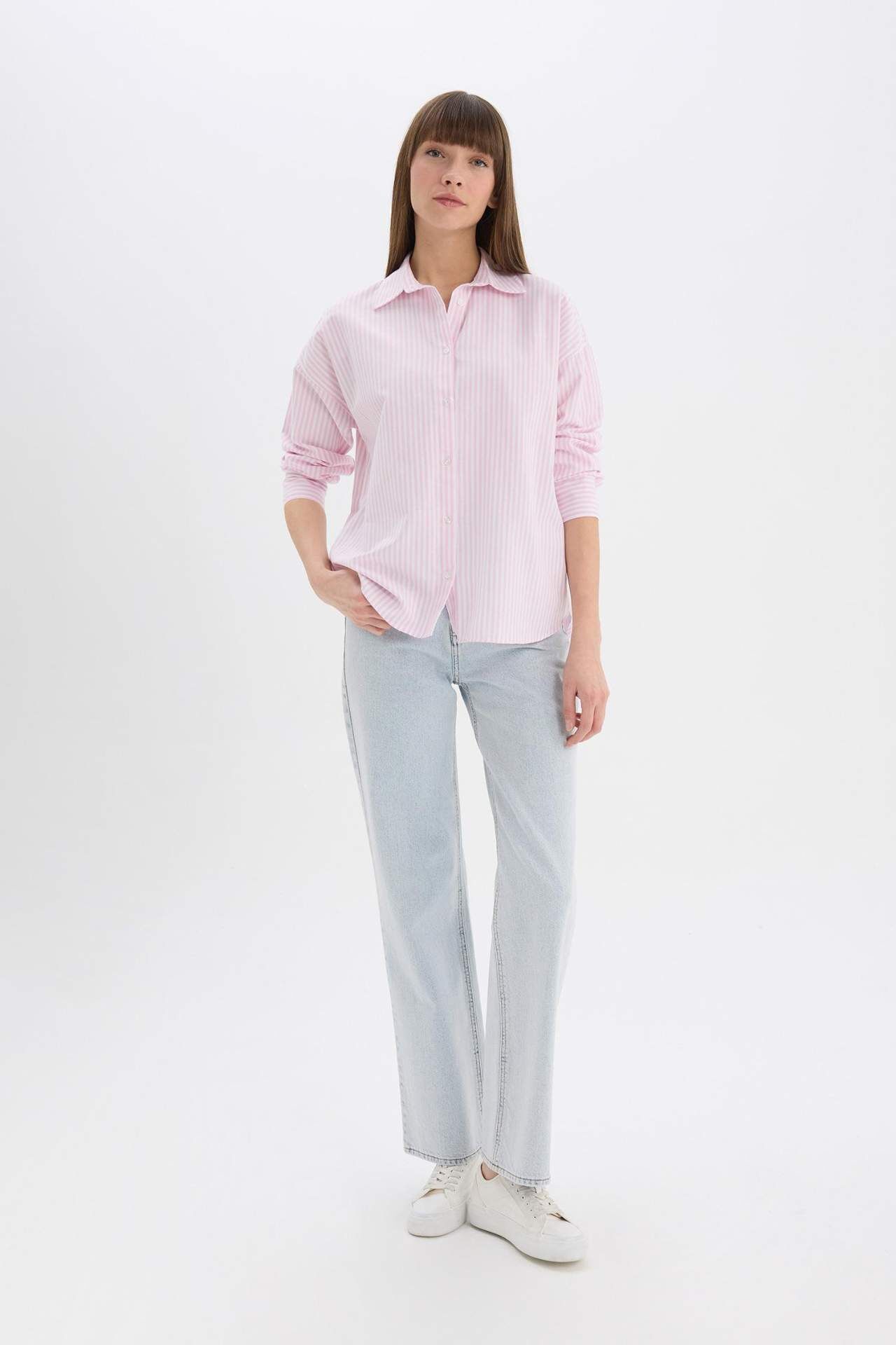 Oversize Geniş Kalıp Çizgili Oxford Uzun Kollu Gömlek D4512AX25SPPN440