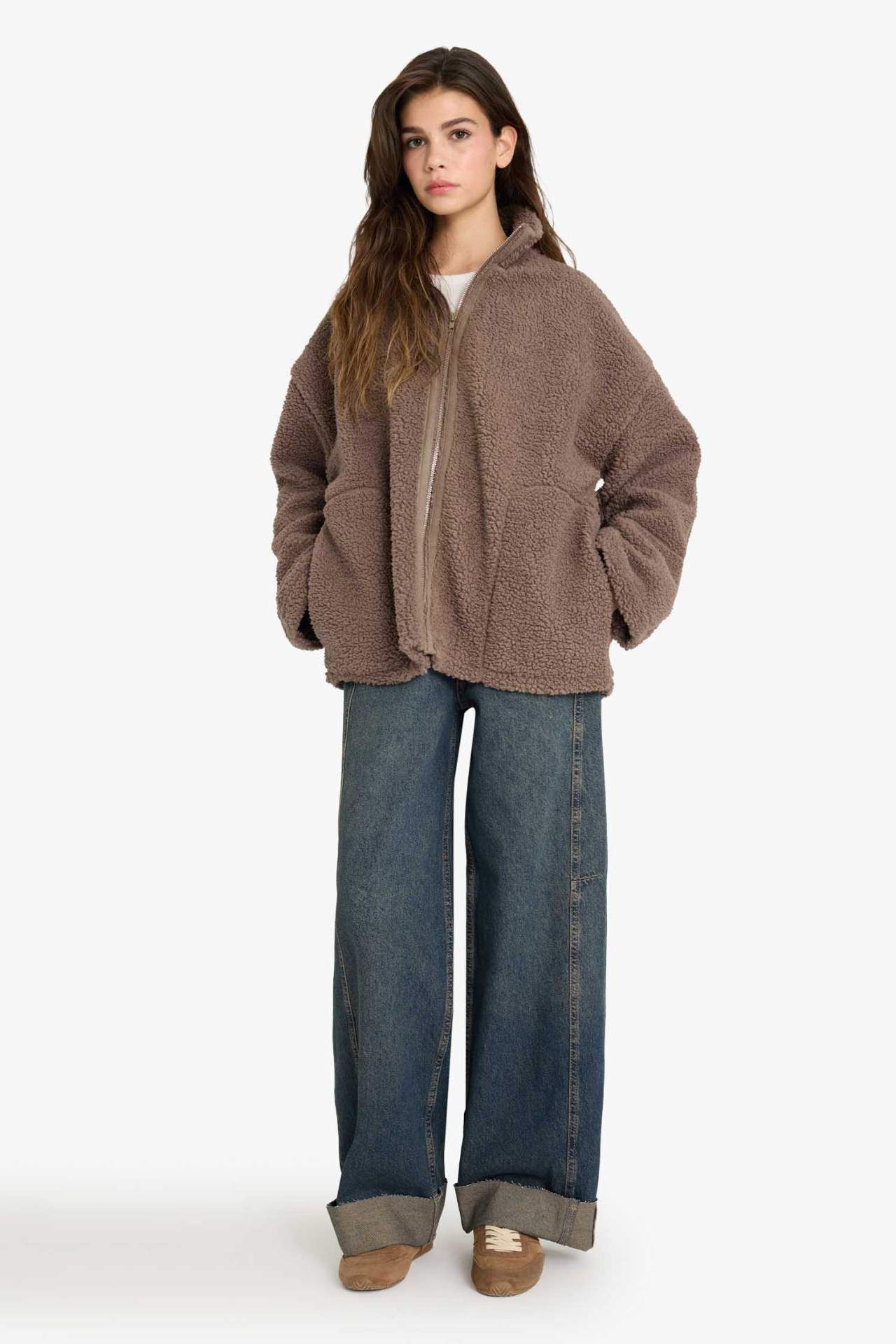 Oversize kesimi ve dik yaka fermuarlı tasarımıyla bu pelüş hırka, rahatlığı ve sıcaklığı bir arada sunar. Yumuşak dokusu, gün boyu konfor sağlar. Poliester 100%,Poliester 100%,Poliester 100%,Poliester 100%