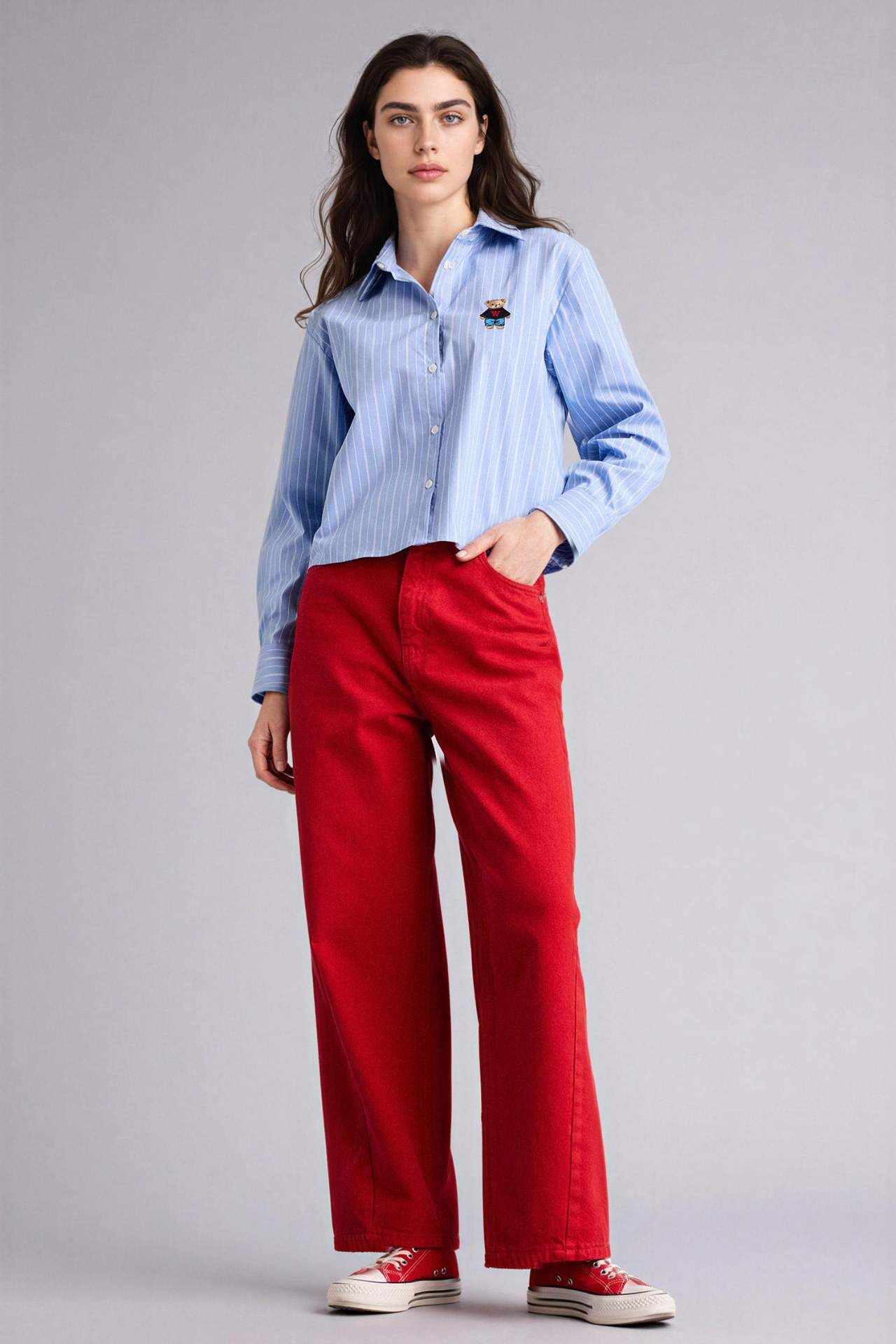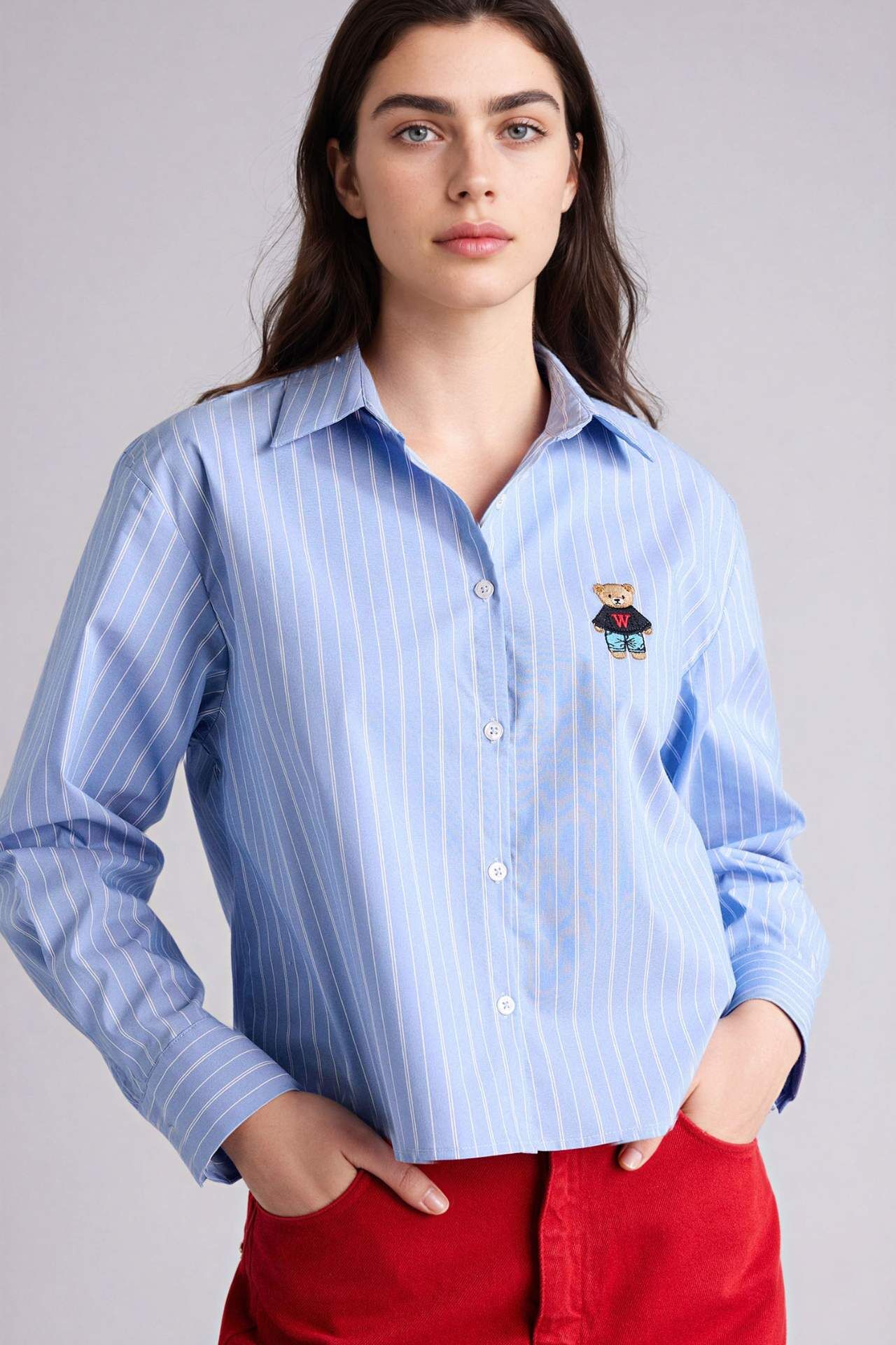 Oversıze Geniş Kalıp Gömlek Yaka Bengalin Uzun Kollu Gömlek