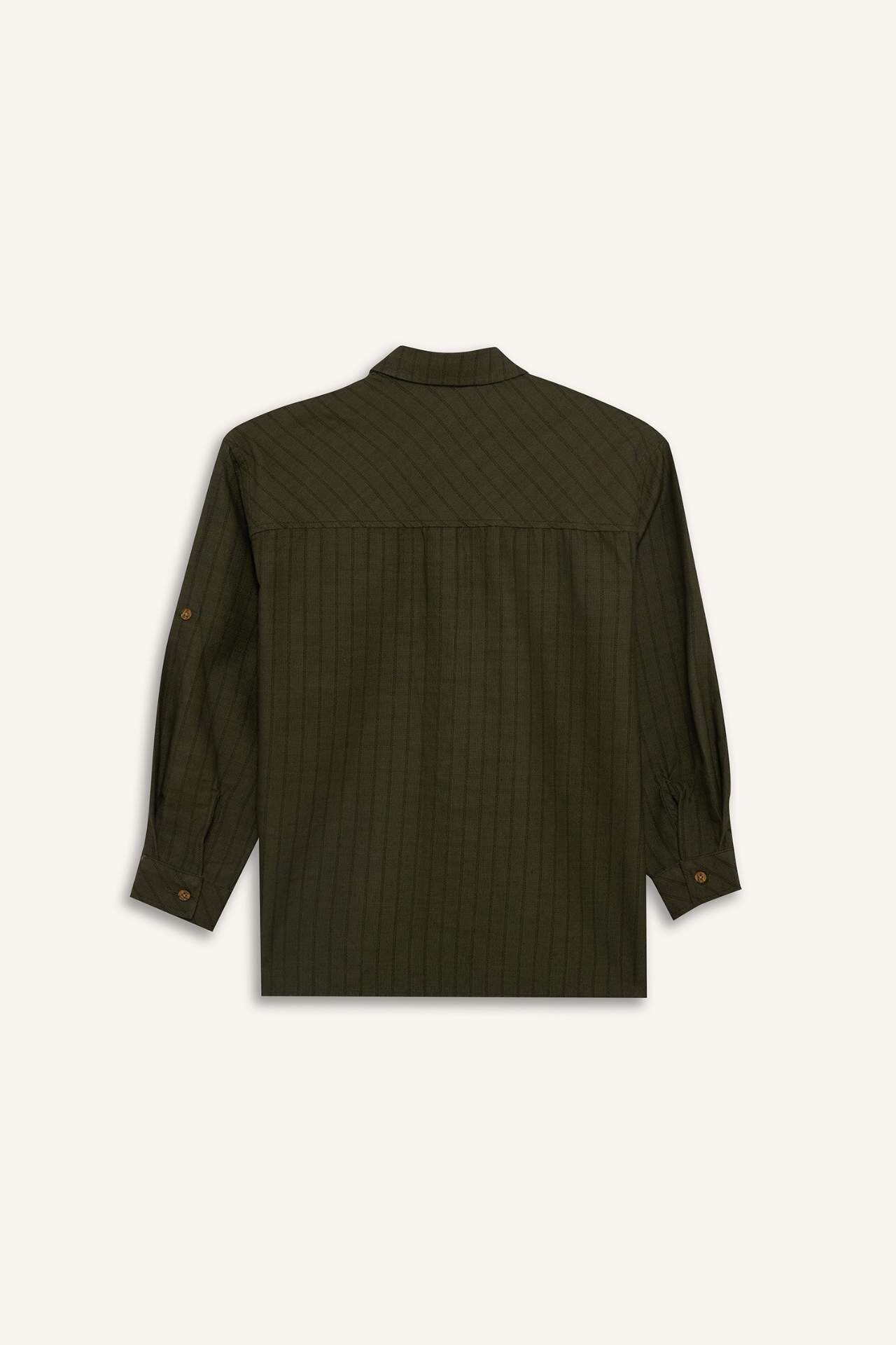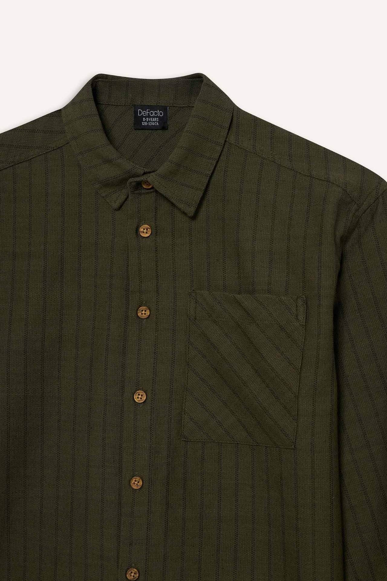 Oversıze Geniş Kalıp Gömlek Yaka Çizgili Poplin Uzun Kollu Gömlek Erkek Çocuk