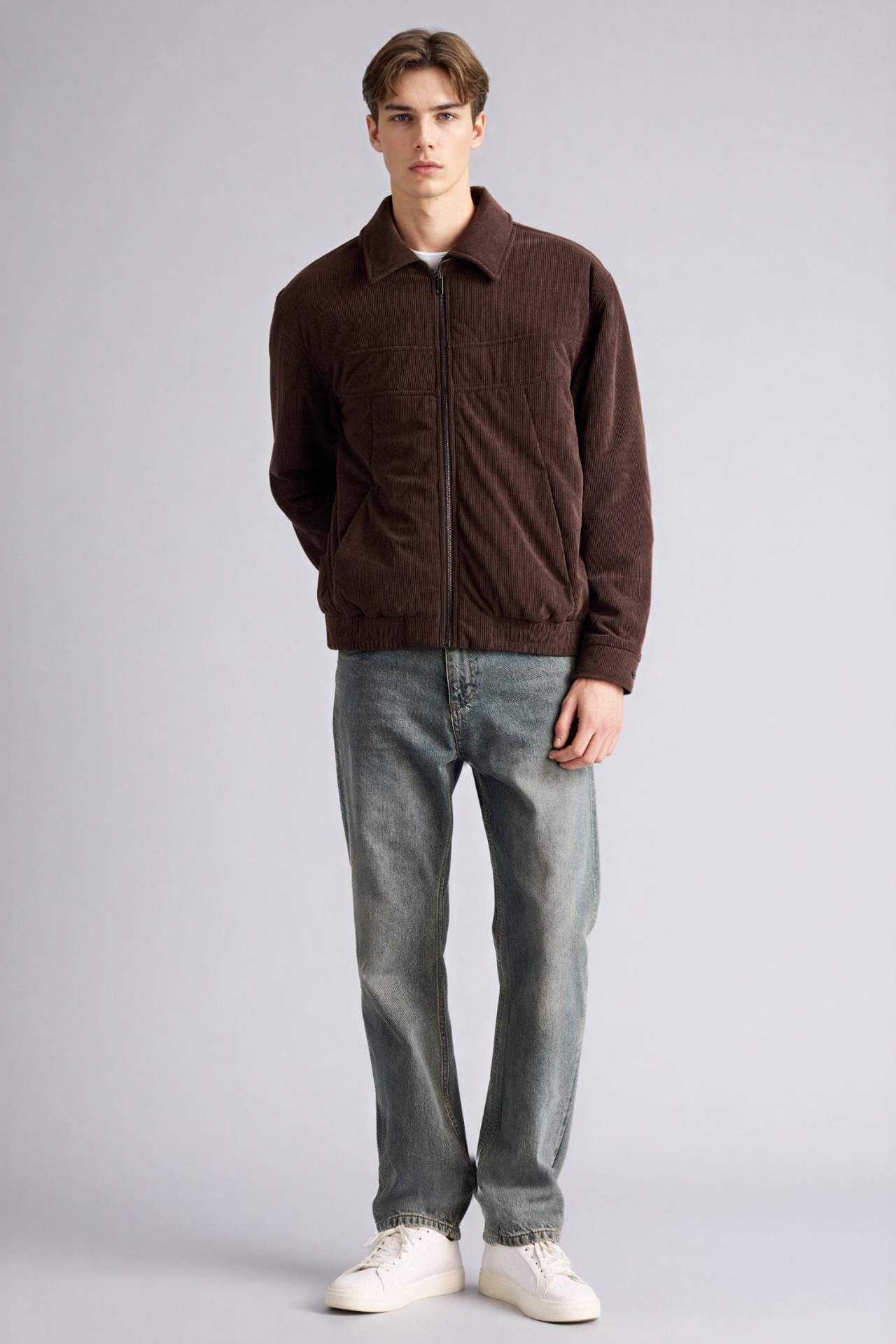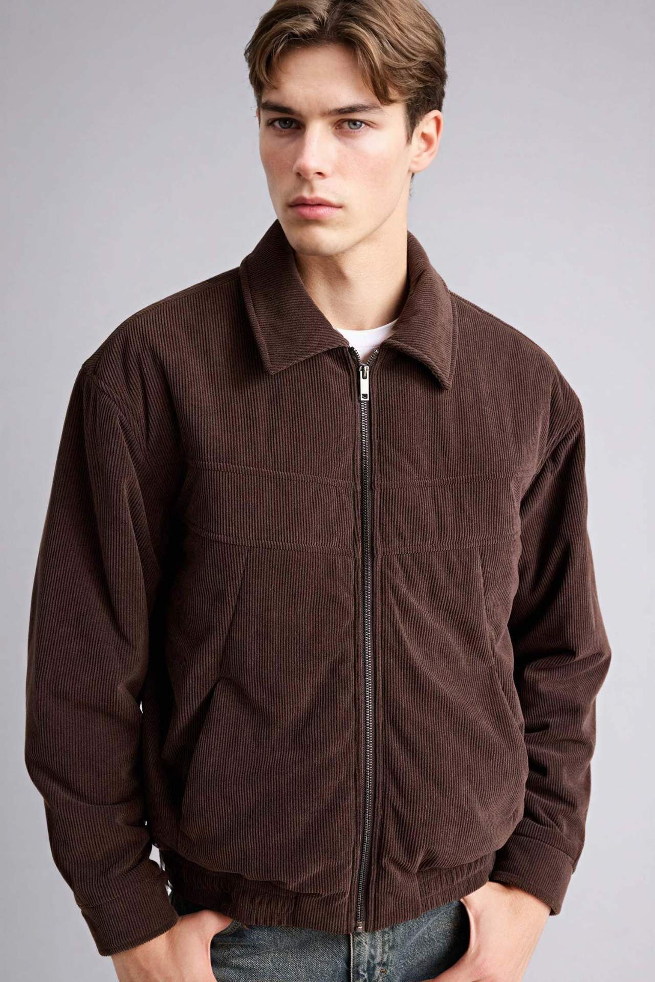 Oversıze Geniş Kalıp Gömlek Yaka Fermuarlı Kadife Mont
