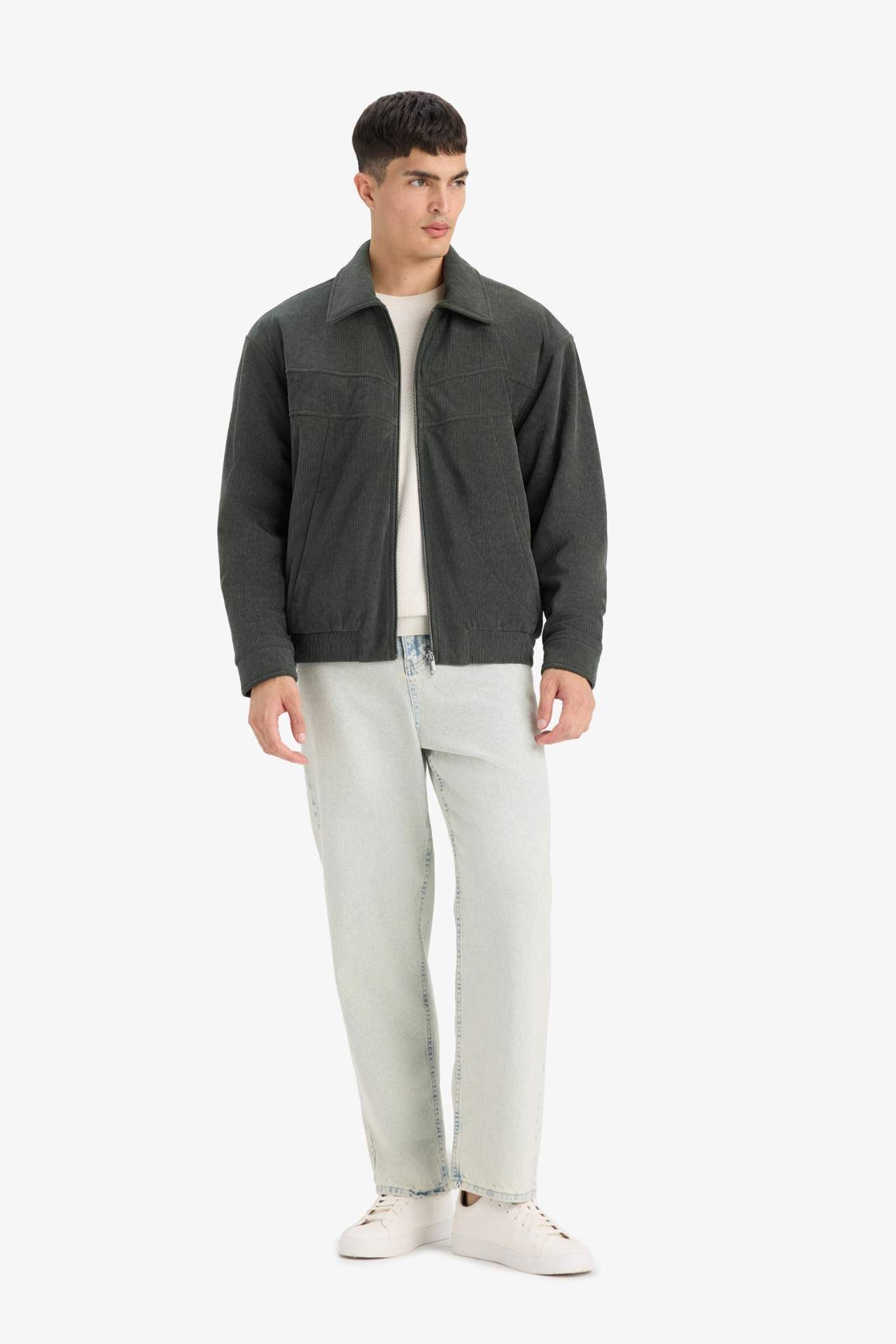 Oversize Geniş Kalıp Gömlek Yaka Fermuarlı Kadife Mont