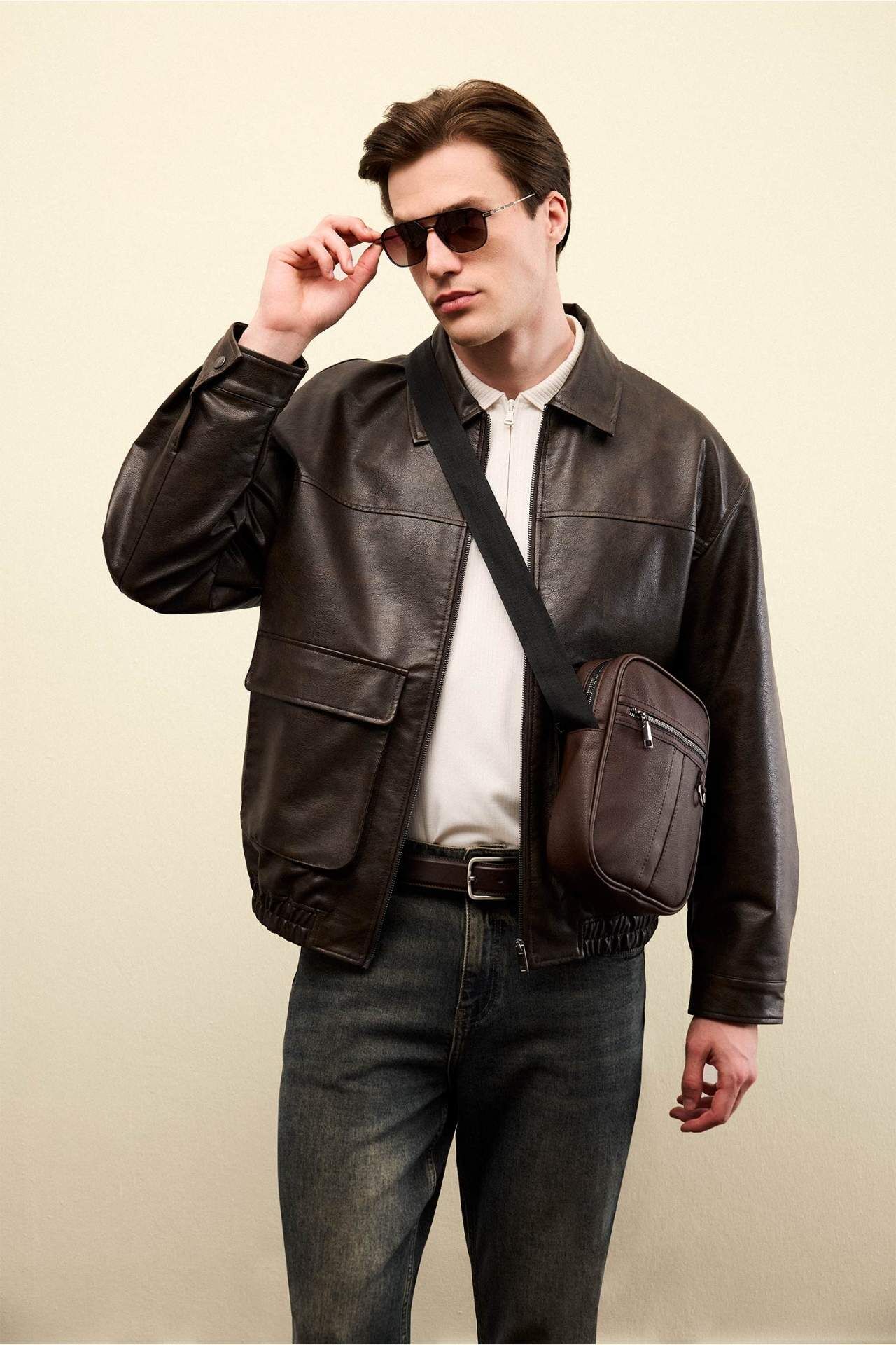 DeFacto Oversıze Geniş Kalıp Gömlek Yaka Fermuarlı Suni Deri Mont