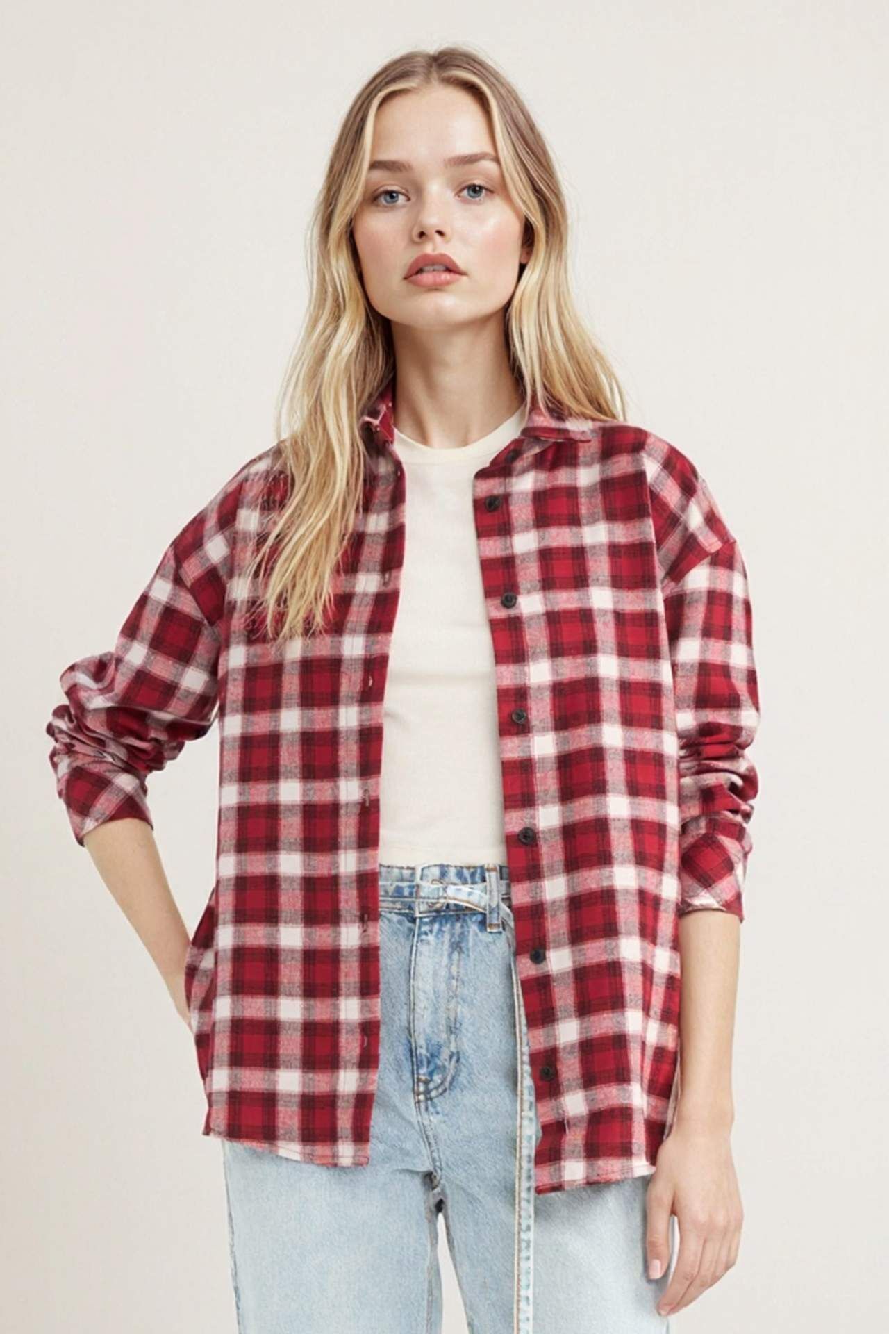 Oversize geniş kalıbı ve gömlek yaka tasarımıyla bu kareli uzun kollu gömlek, rahat ve trend bir stil sunar. Günlük kullanıma uygun, şık bir tercih. Pamuk 100%,Pamuk 100%,Pamuk 100%,Pamuk 100%,Pamuk 100%,Pamuk 100%,Pamuk 100%