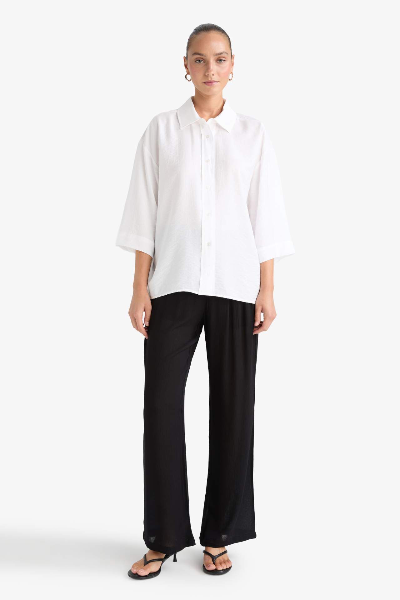 Oversize geniş kalıp krinkıl kumaş uzun kollu gömlek, bol kesimi ve hafif dokusuyla rahat bir kullanım sunar. Krinkıl kumaşıyla modern ve şık bir görünüm kazandırır. Günlük ve smart-casual kombinlerde trend bir tercih olarak öne çıkar. Poliamid 14%,Viskoz 86%,Poliamid 14%,Viskoz 86%,Poliamid 14%,Viskoz 86%,Poliamid 14%,Viskoz 86%,Poliamid 14%,Viskoz 86%,Poliamid 14%,Viskoz 86%,Poliamid 14%,Viskoz 86% Manken Bedeni: Göğüs: 86 Boy: 1,78 Basen: 89 Bel: 60