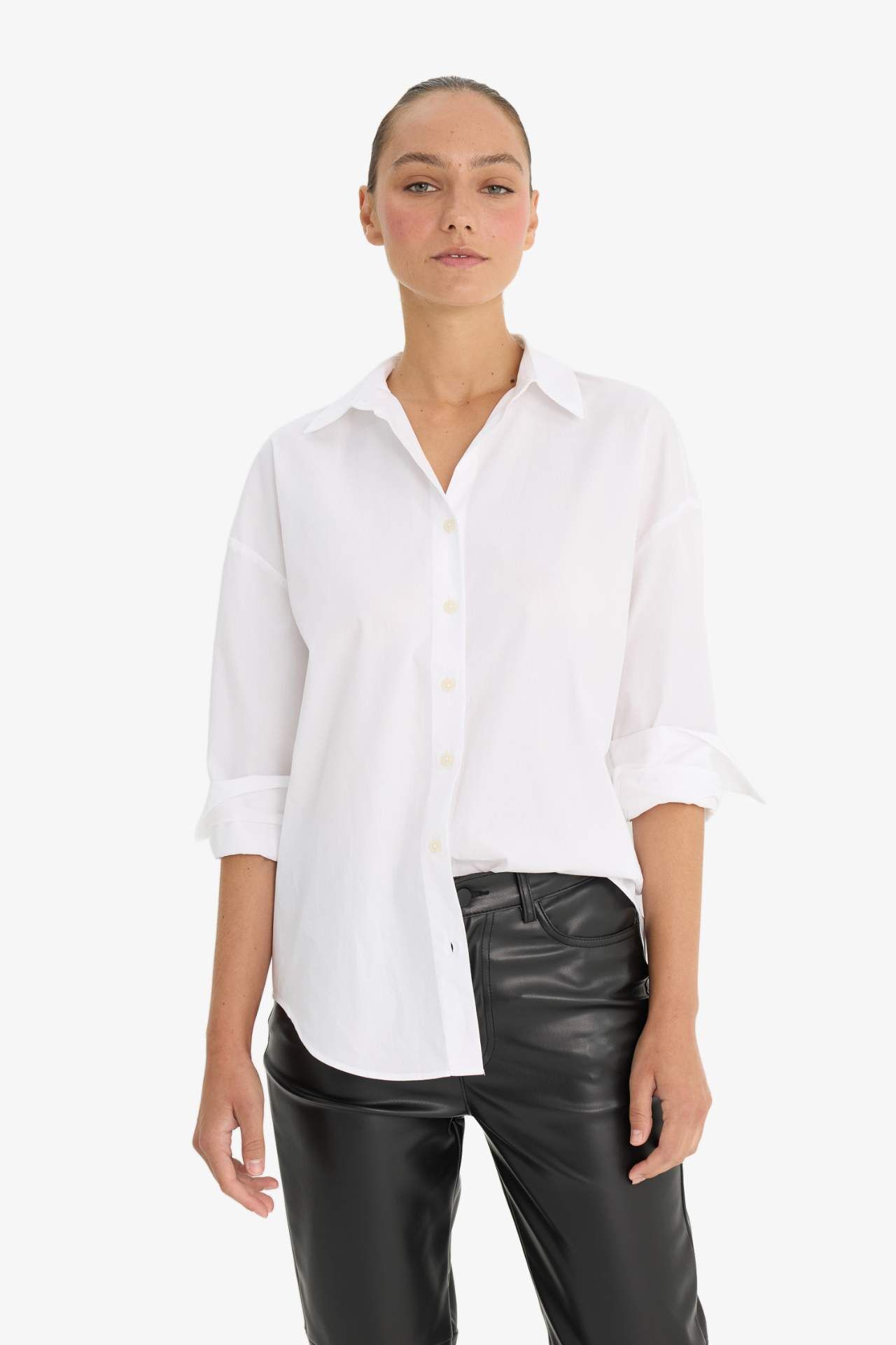 Oversize Geniş Kalıp Gömlek Yaka Poplin Uzun Kollu Gömlek