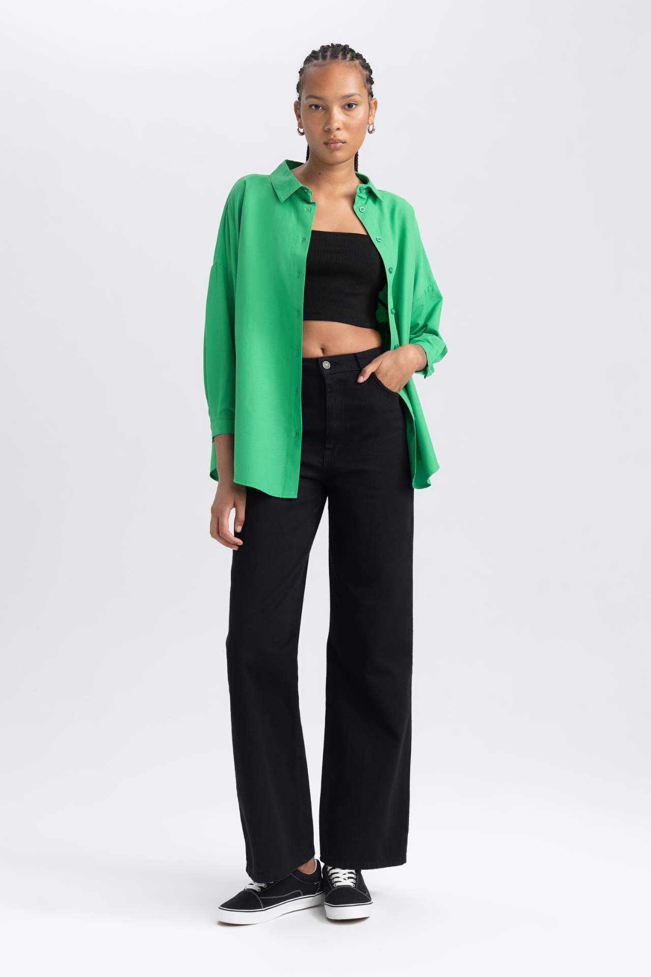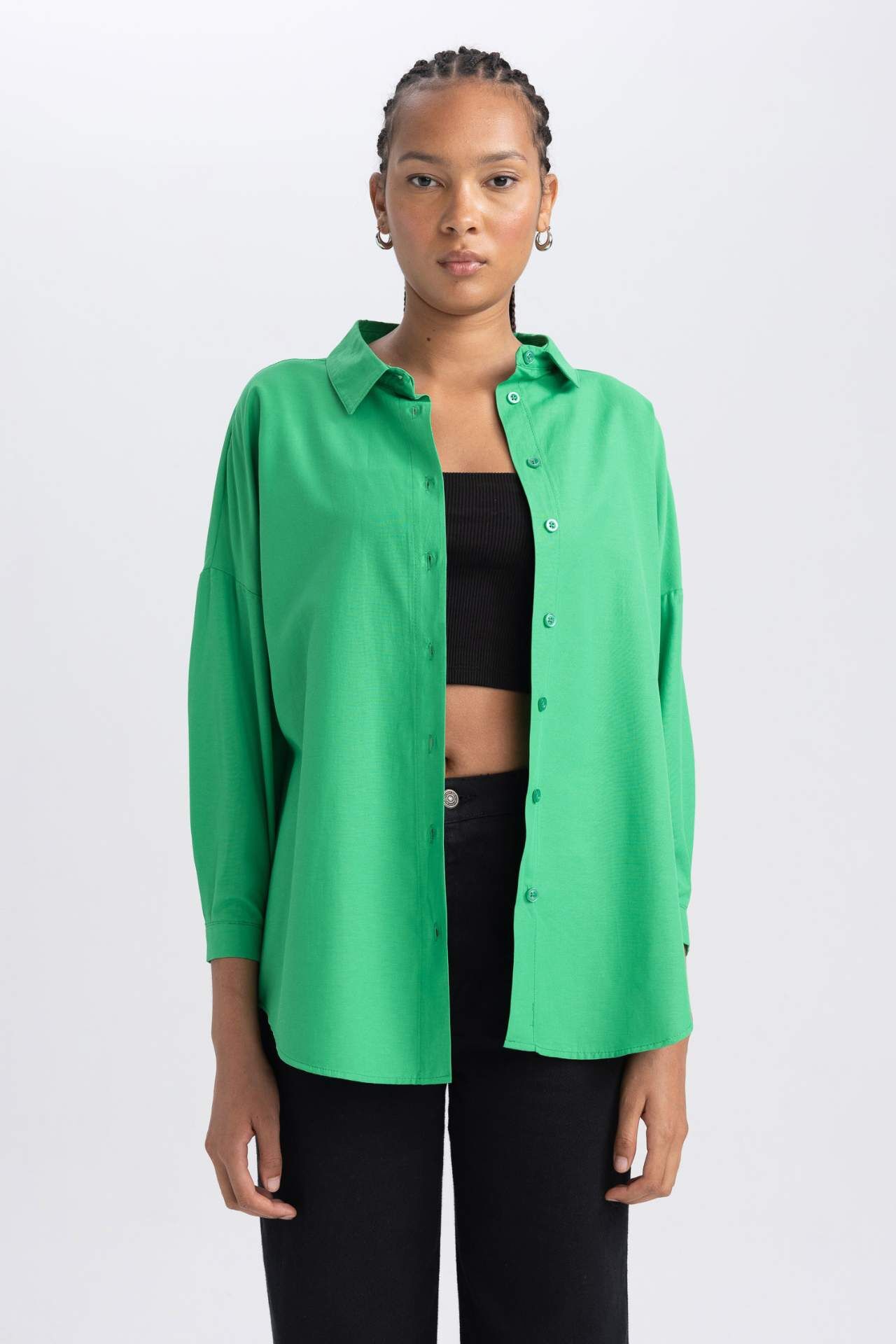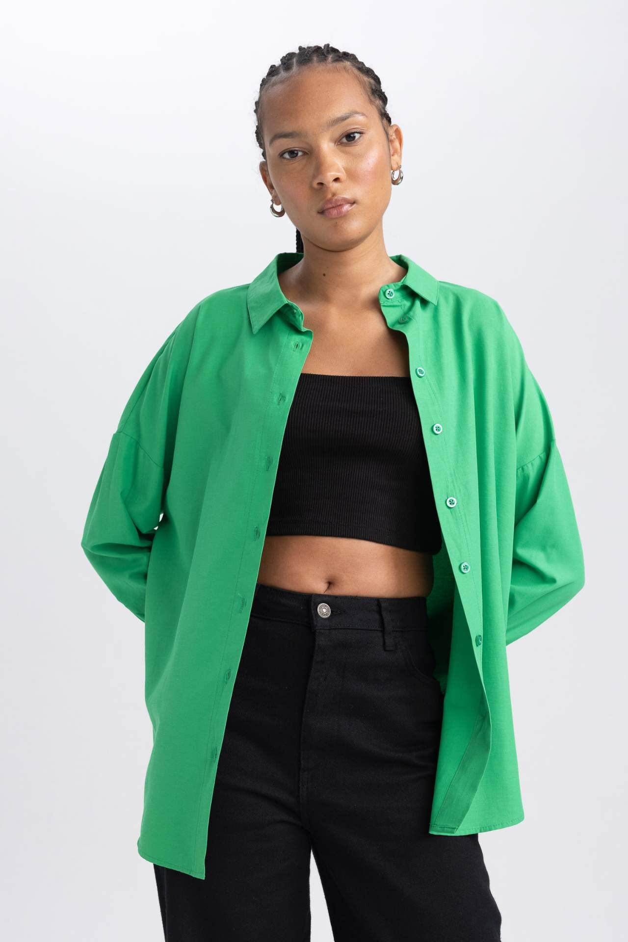 Oversize Geniş Kalıp Gömlek Yaka Poplin Uzun Kollu Tunik