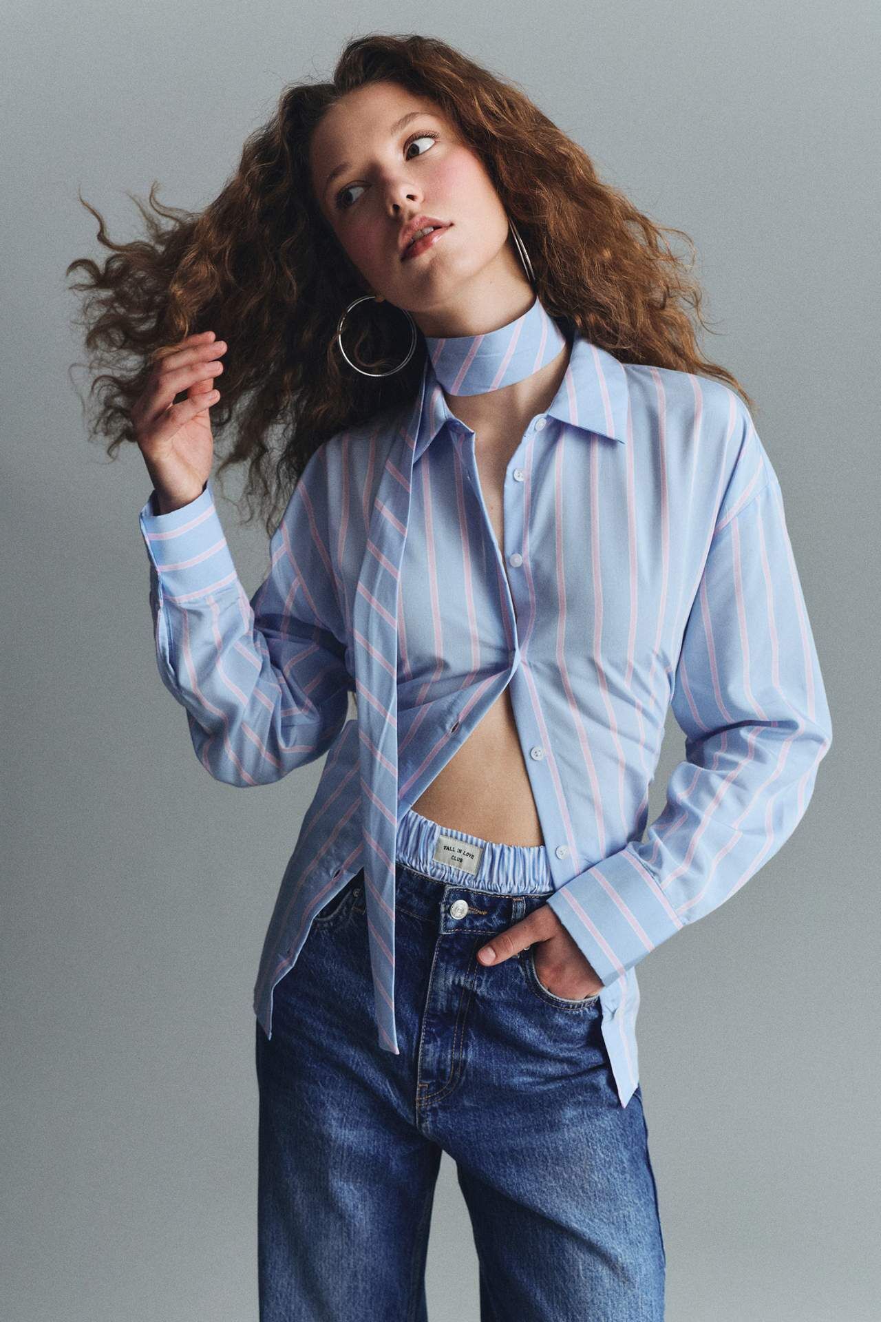 Oversize Geniş Kalıp Kravat Detaylı Çizgili Uzun Kollu Gömlek, rahat kesimi ve şık çizgili tasarımıyla modern bir stil sunar. Kravat detayı kombine sofistike bir dokunuş katarken, oversize formu gün boyu konfor sağlar. Hem iş hem de günlük şıklık için ideal bir parçadır. Poliamid 15%,Viskoz 85%