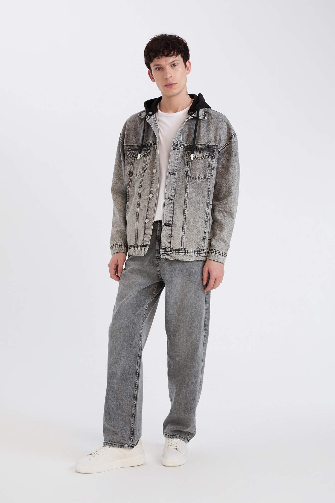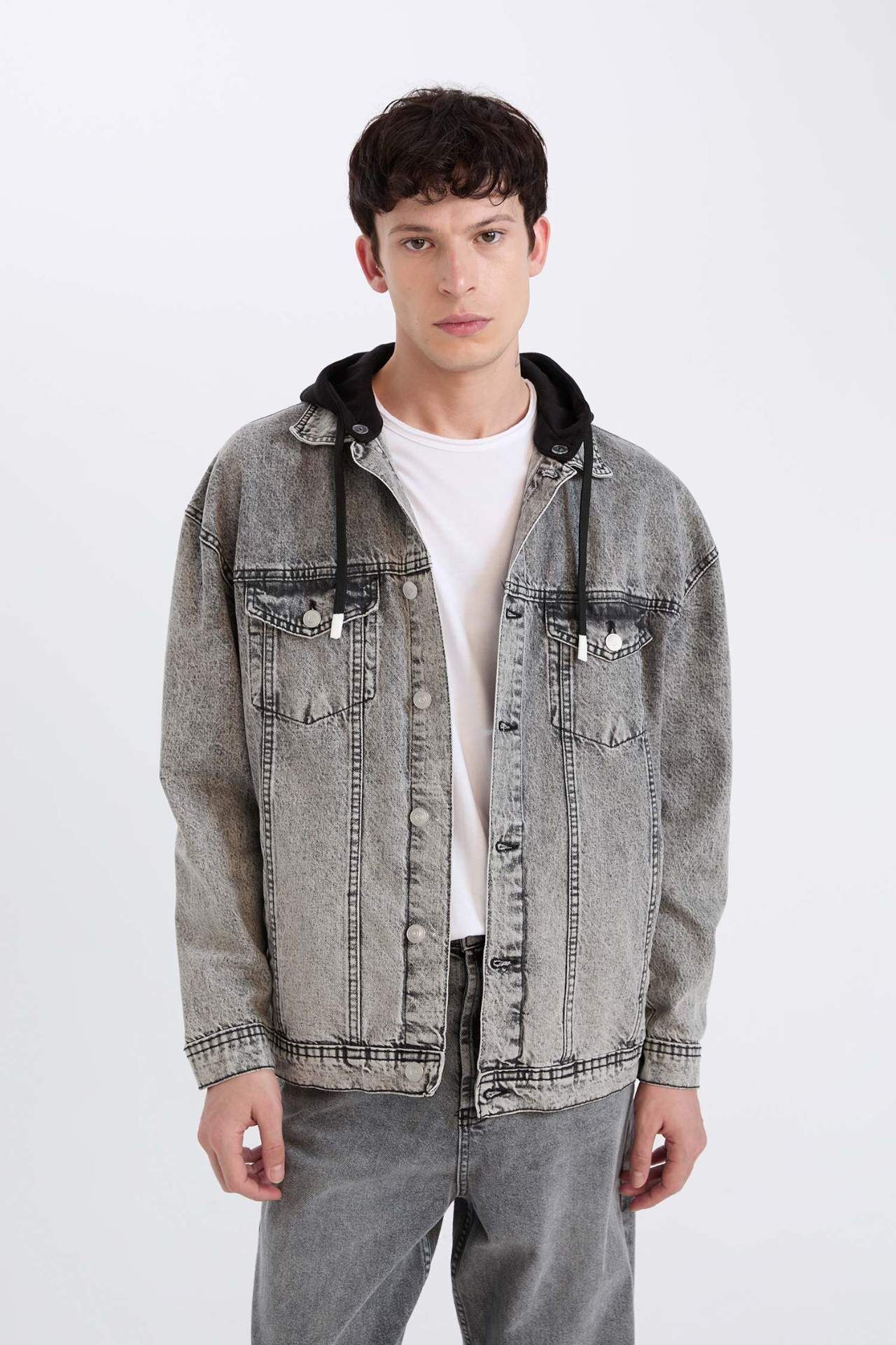DeFacto Oversize Geniş Kalıp Kapüşonlu Düğmeli Jean Ceket D0416AX24AUNM55