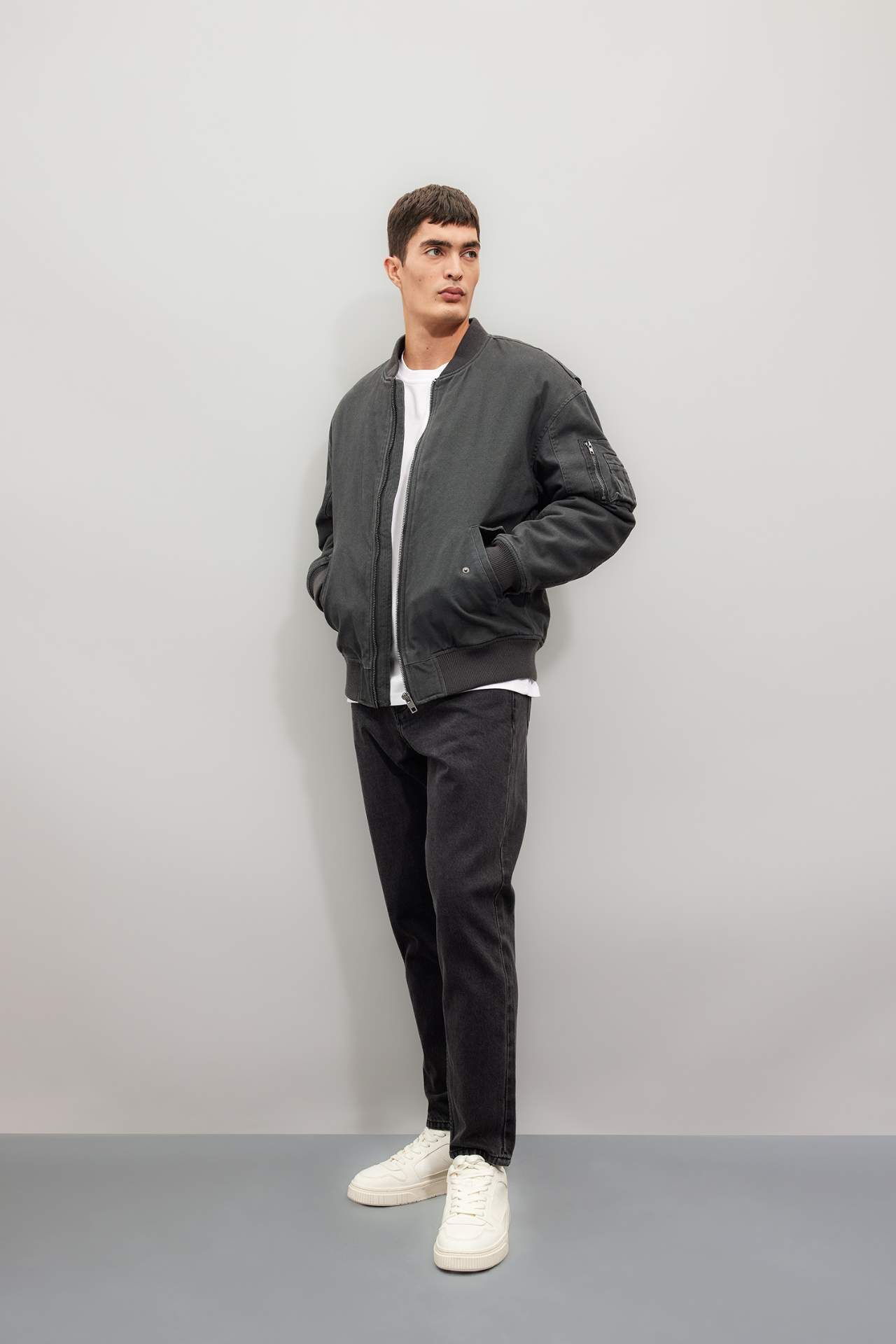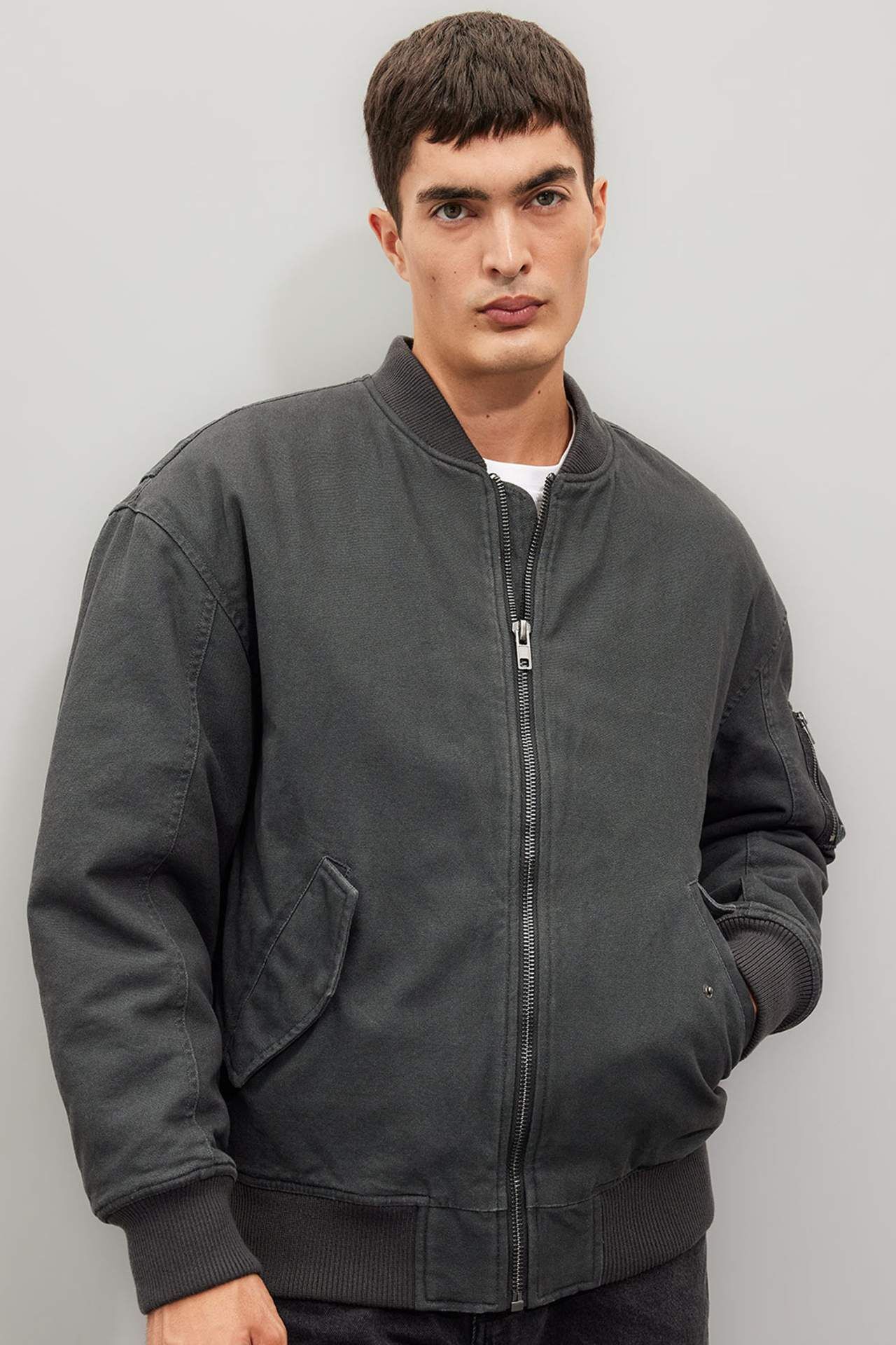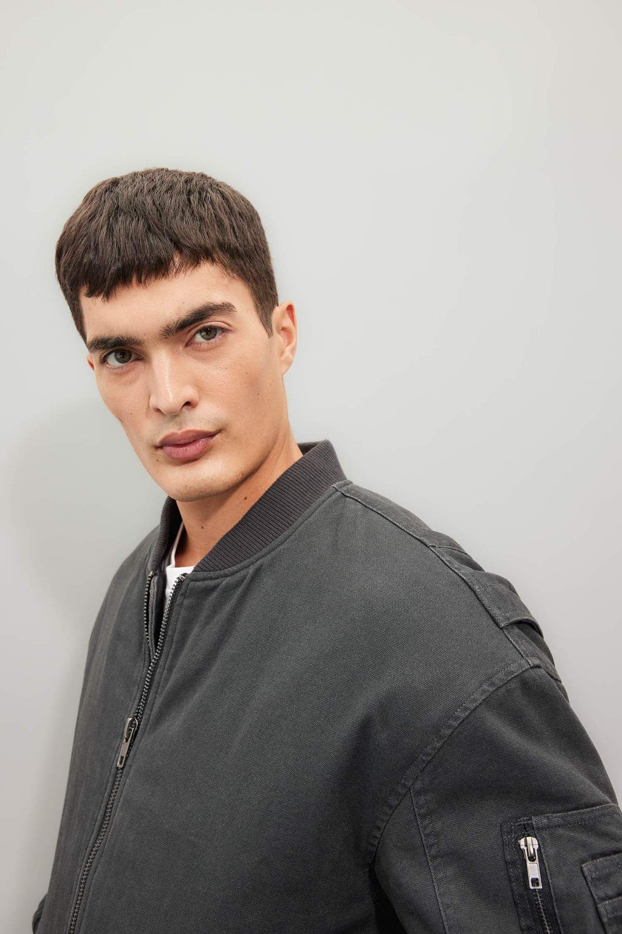 DeFacto Oversize Geniş Kalıp Kolej Yaka Fermuarlı Cepli Pamuklu Mevsimlik Yıkamalı Soluk Efektli Bomber Mont Ceket