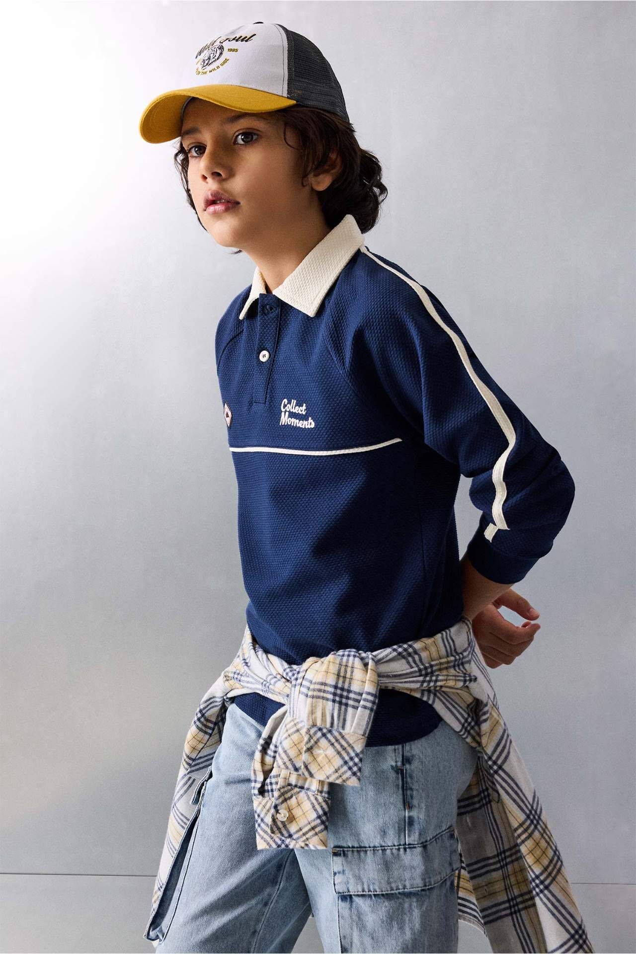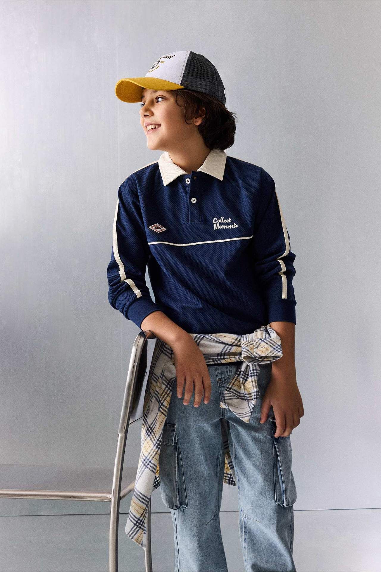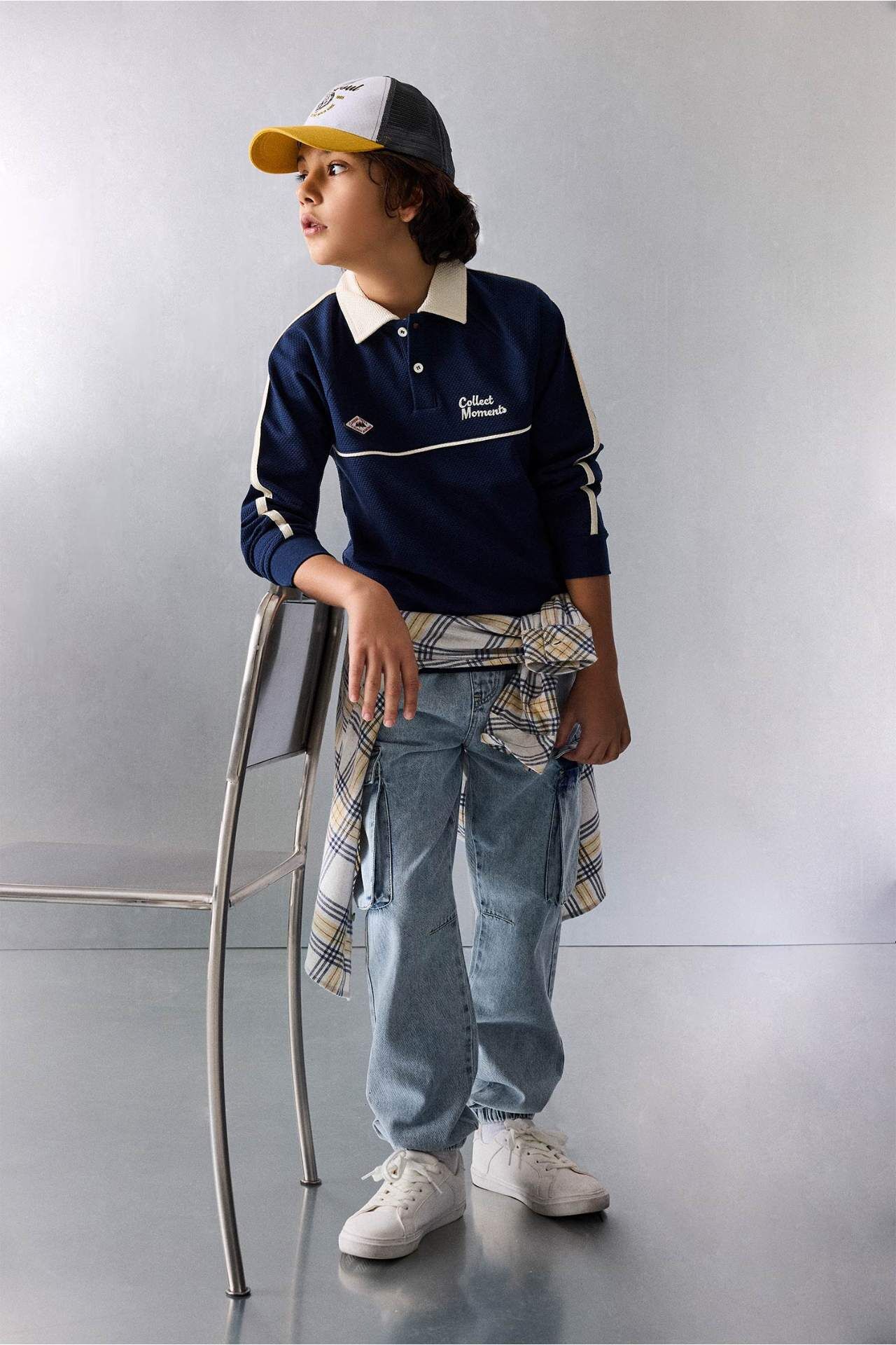 Oversıze Geniş Kalıp Polo Yaka Baskılı Uzun Kollu Polo Tişört Erkek Çocuk