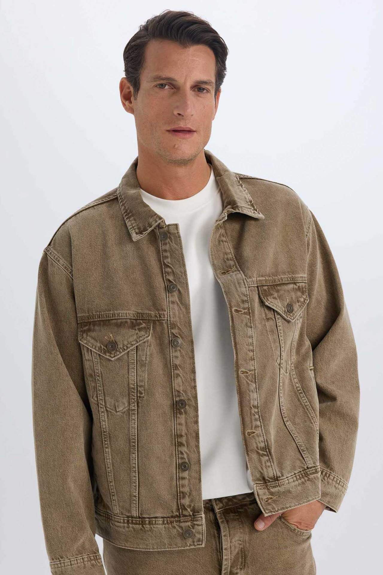 DeFacto Oversize Geniş Kalıp Polo Yaka Düğmeli Cepli Yıkamalı Jean Ceket