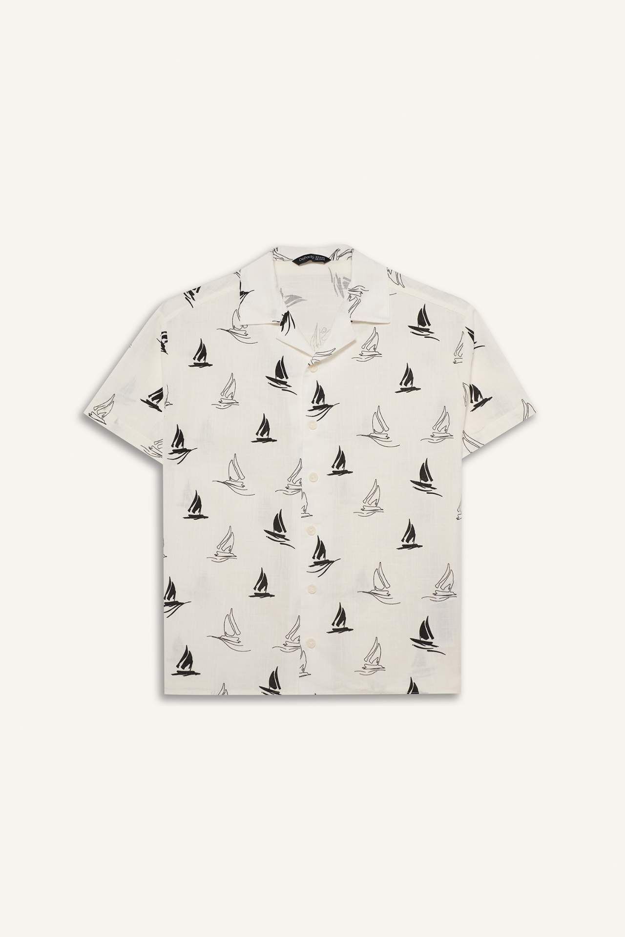 Oversıze Geniş Kalıp Polo Yaka Tropikal Desenli Baskılı Kumaş Kısa Kollu Gömlek Erkek Çocuk