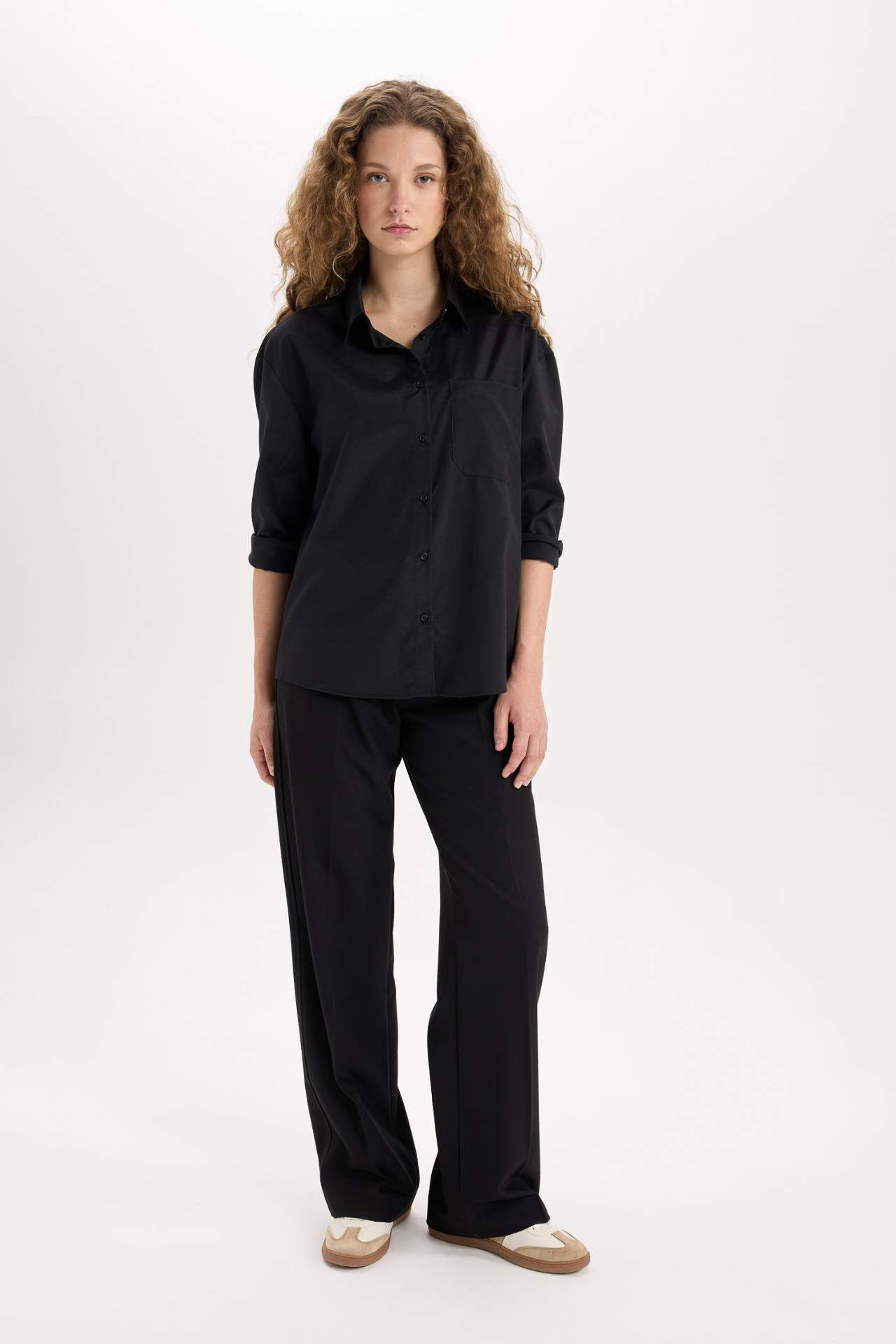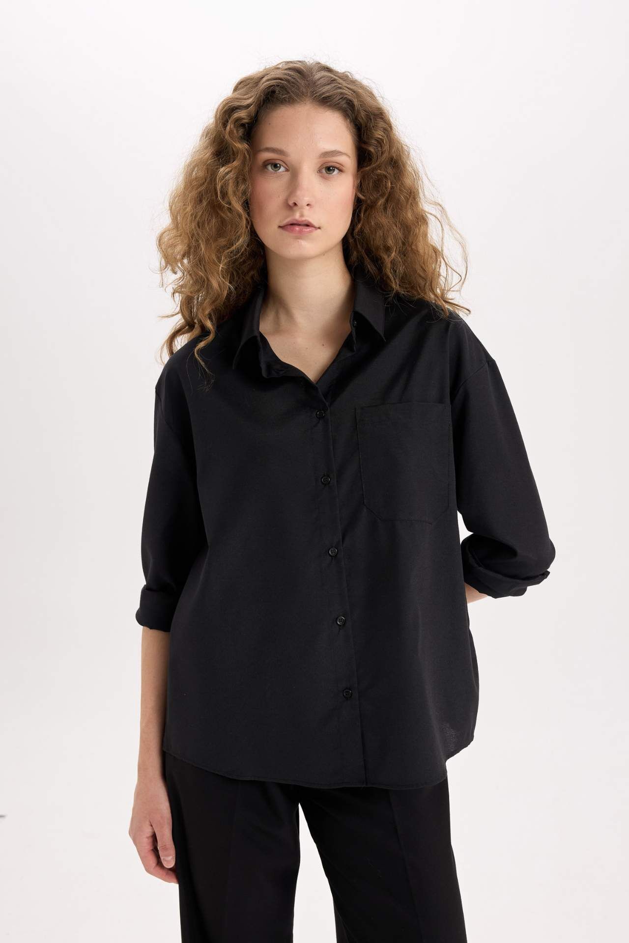 DeFacto Oversize Geniş Kalıp Poplin Uzun Kollu Gömlek E2294AXNSBK27