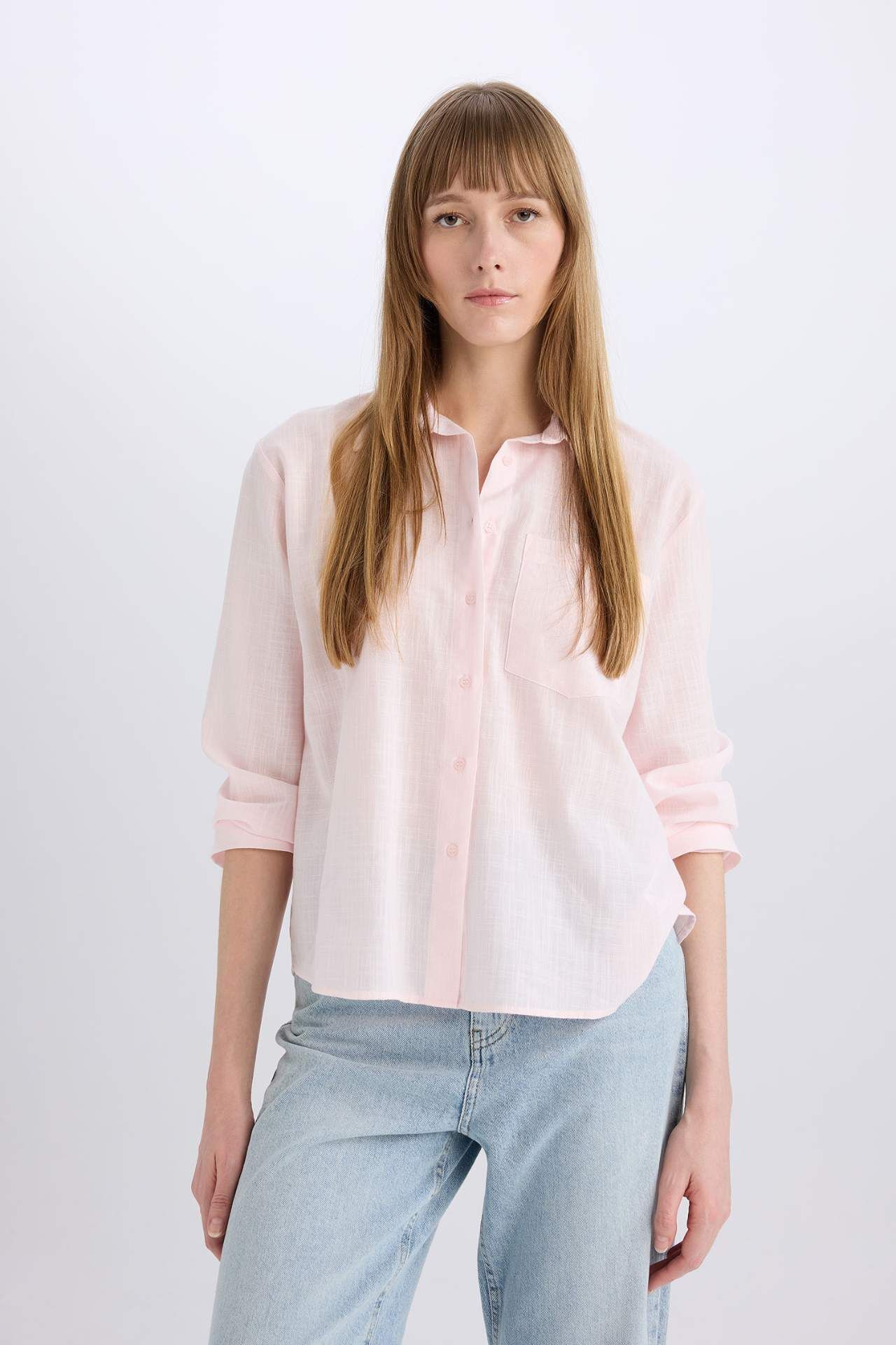 DeFacto Oversize Geniş Kalıp Tek Ceplli Uzun Kollu Gömlek