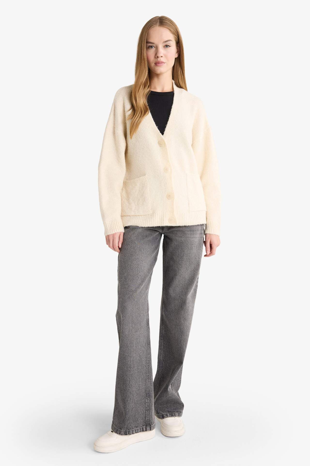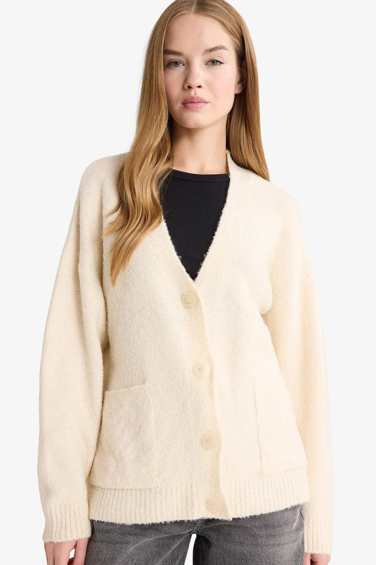 Oversize Geniş Kalıp V Yaka Hırka