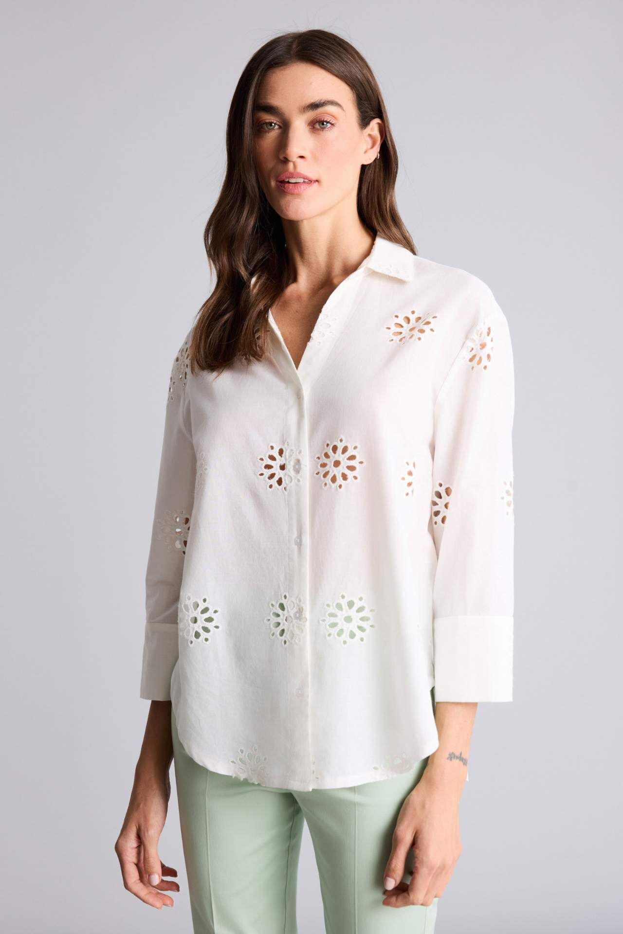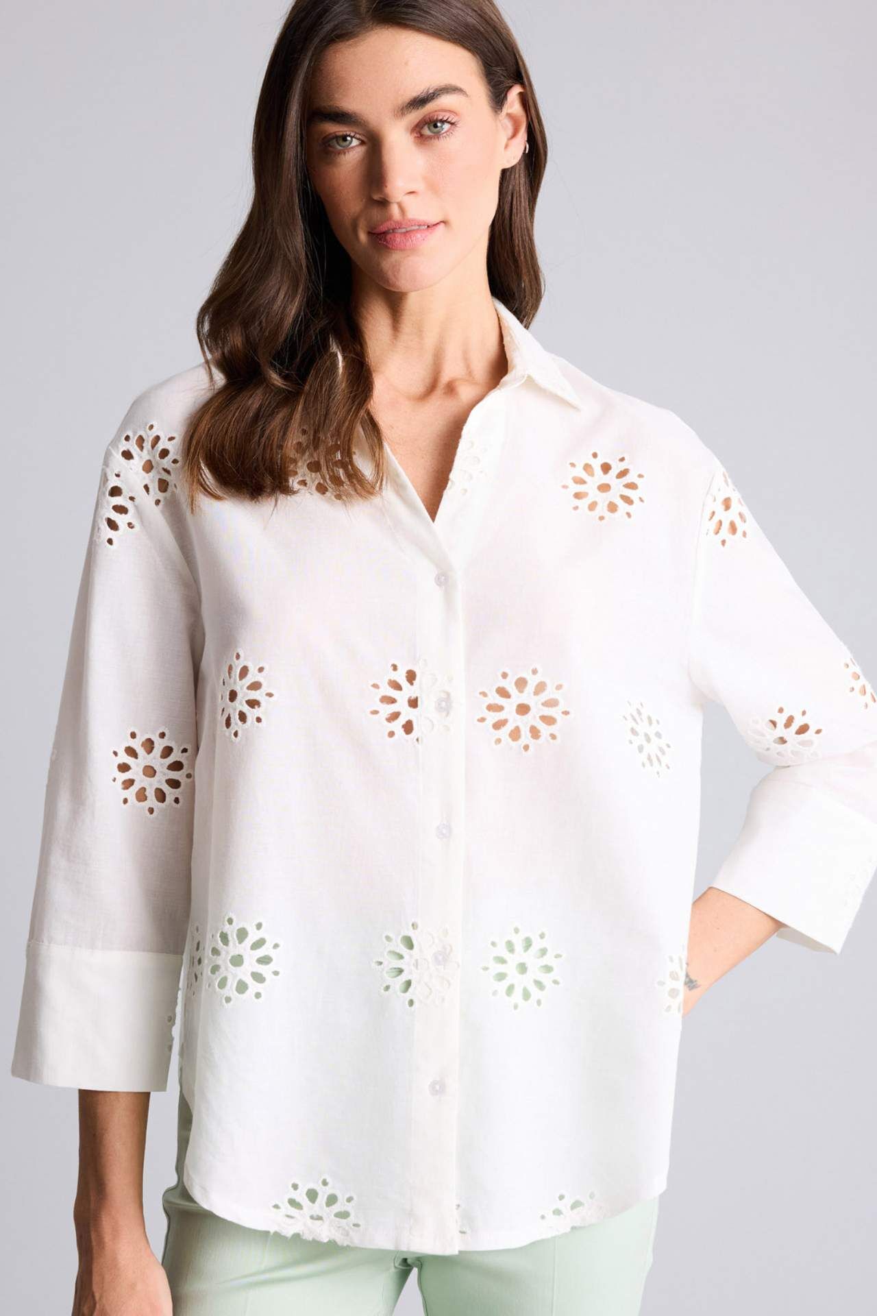 Yetişkin kadınlar için ideal olan bu beyaz uzun kollu gömlek, oversize kalıbı ve yarım kollu tasarımıyla öne çıkıyor. İlkbahar ve yaz aylarında rahatlıkla tercih edebileceğiniz brode kumaştan üretilmiştir. Şık görünümünü oval paça detayı ve gömlek yakasıyla tamamlar. Klasik ve şık tarzıyla dikkat çeker. Pamuk 100% Manken Bedeni: Göğüs: 89 Boy: 1,78 Basen: 92 Bel: 63