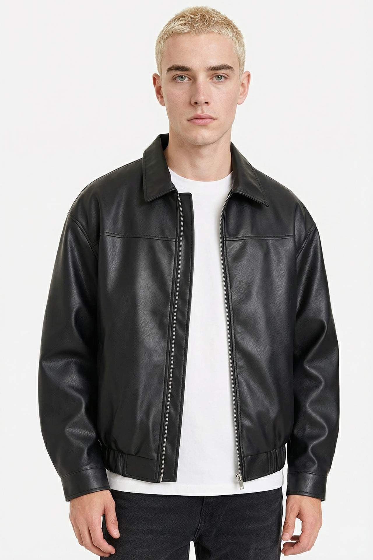 Oversize Gömlek Yaka Fermuarlı Mont, geniş kalıbı sayesinde rahat ve modern bir kullanım sunar. Gömlek yaka detayı klasik bir dokunuş katarken, fermuarlı tasarımı pratiklik sağlar. Günlük ve şehir kombinlerine kolayca uyum sağlayan şık bir dış giyim parçasıdır. Poliüretan 100%,Poliester 100%,Poliester 100%,Poliester 100% Manken Bedeni: Göğüs: 83 Boy: 1,83 Basen: 90 Bel: 64