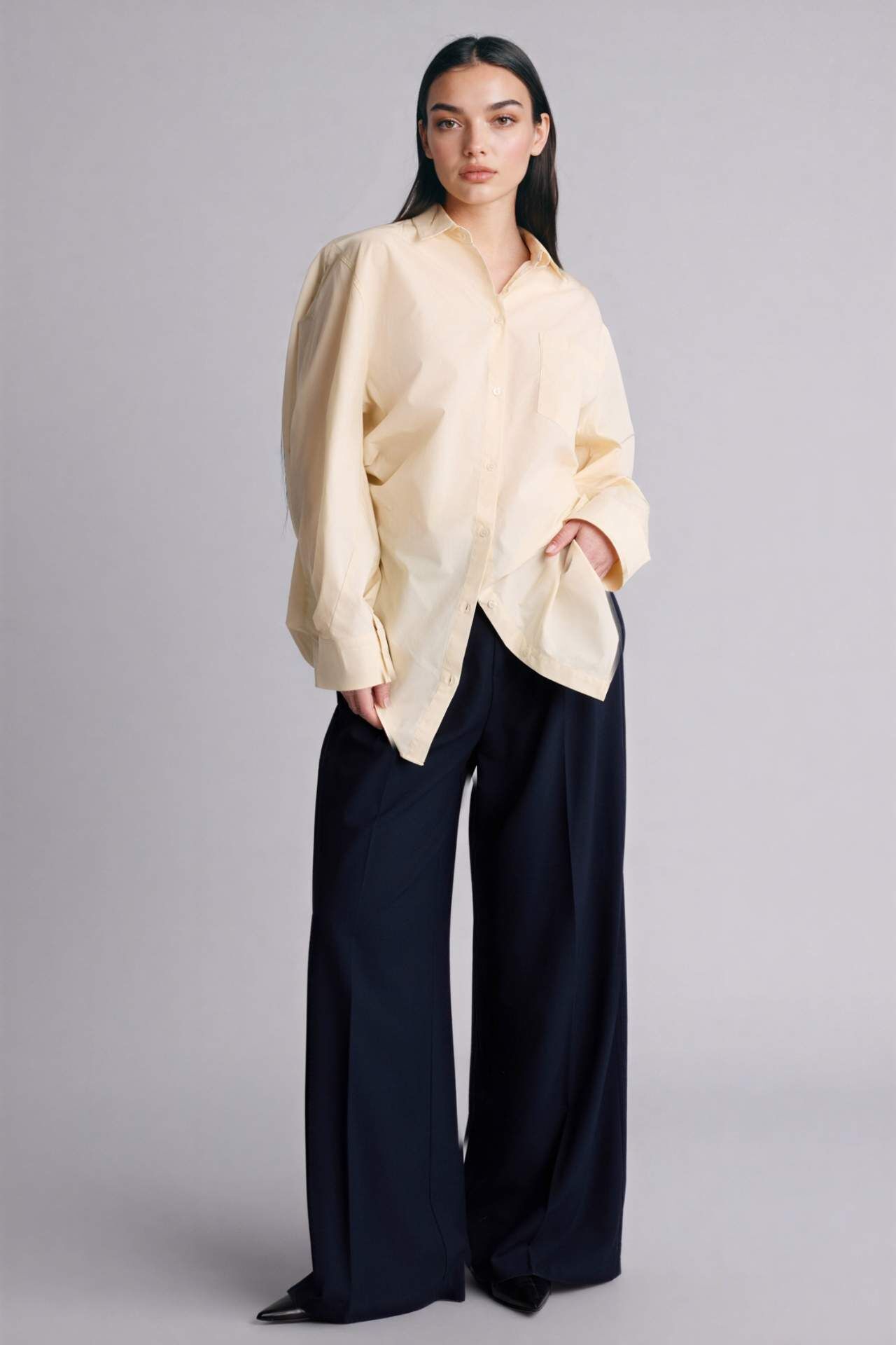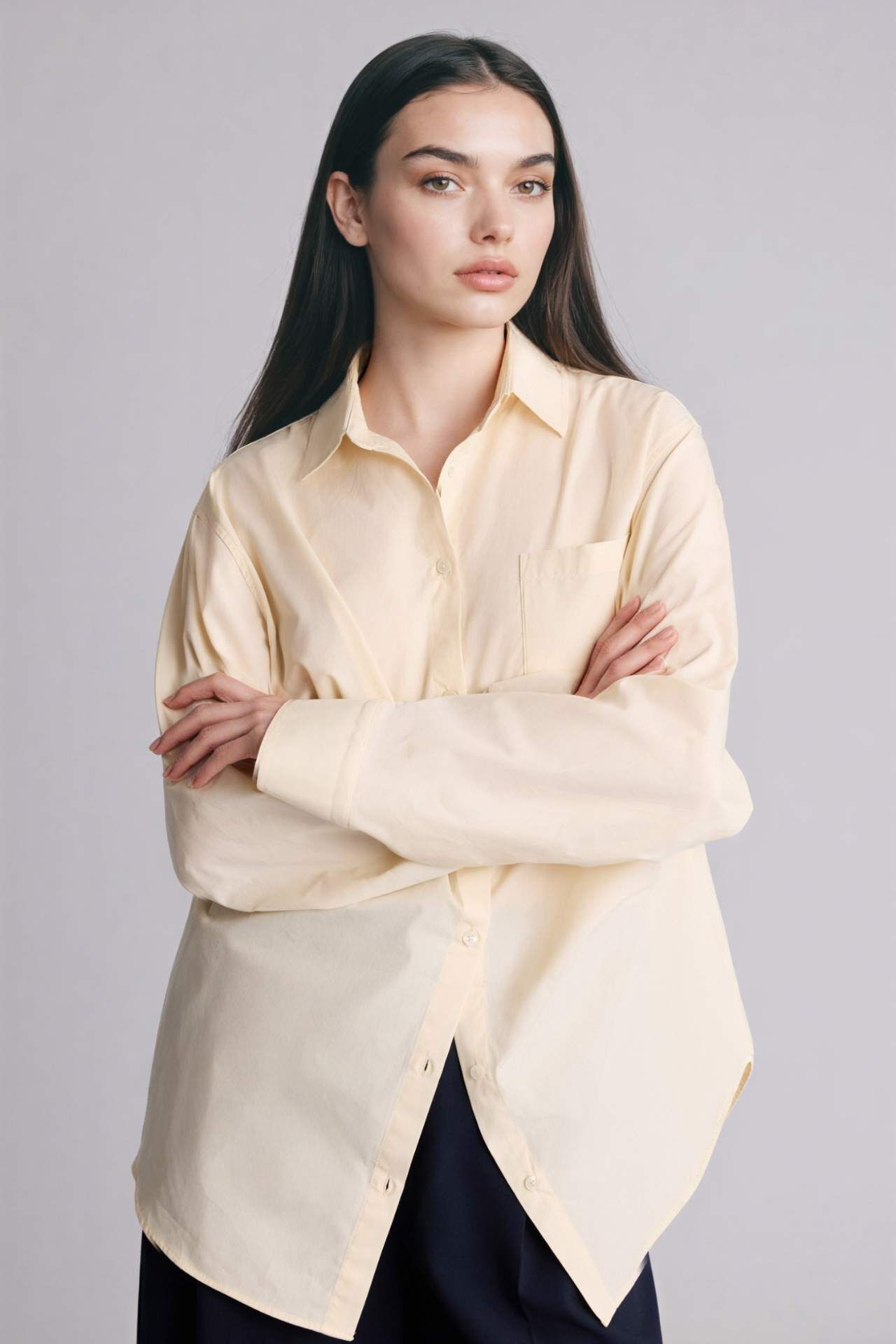 Oversıze Gömlek Yaka Poplin Uzun Kollu Gömlek