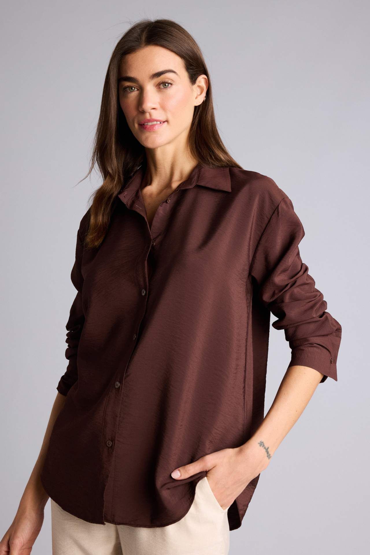 DeFacto Oversıze Gömlek Yaka Uzun Kollu Gömlek