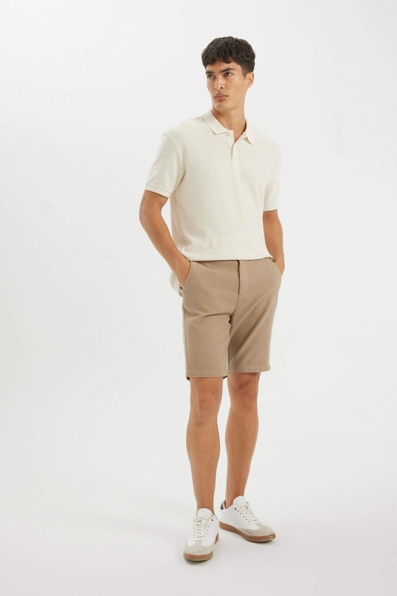 Yumuşak pamuklu kumaşıyla konforu ve şıklığı bir araya getiren Bermuda şort, günlük şıklığın vazgeçilmezi olacak. Rahat kesimi ve şık tasarımıyla her mevsim tercih edebileceğiniz bir parça. Gardırobunuzun favori parçası olmaya aday. Pamuk 100%,Pamuk 100% Manken Bedeni: Göğüs: 93 Boy: 1,85 Basen: 97 Bel: 87