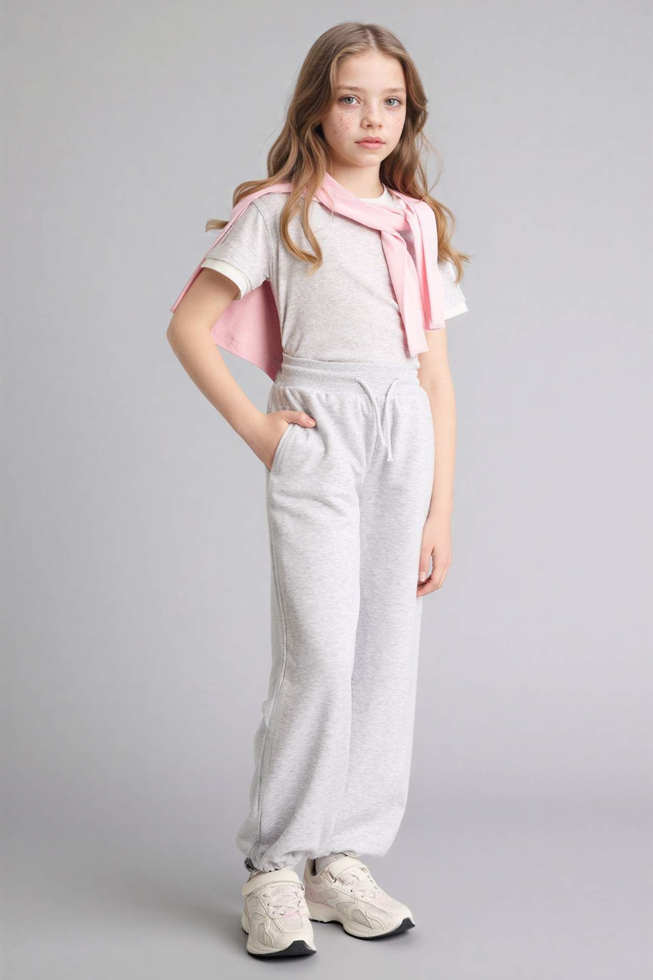 Rahat kesimi ve modern jogger tasarımıyla kız çocuk eşofman altı, gün boyu konfor sunar. Yumuşak ve nefes alabilen kumaşı sayesinde hem okulda hem de günlük aktivitelerde rahatlıkla tercih edilebilir. Lastikli paça detayıyla hem şık hem de sportif bir görünüm sağlar. Pamuk 51%,Poliester 49% Manken Bedeni: Göğüs: 62 Boy: 1,24 Basen: 73 Bel: 53