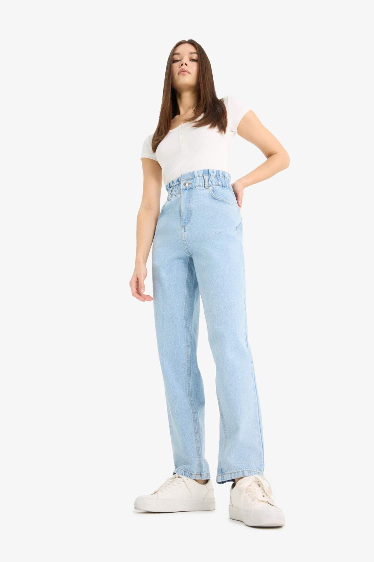 DeFacto Paperbag Yüksek Bel Düz Paça Uzun Jean Kar Yıkamalı Pantolon