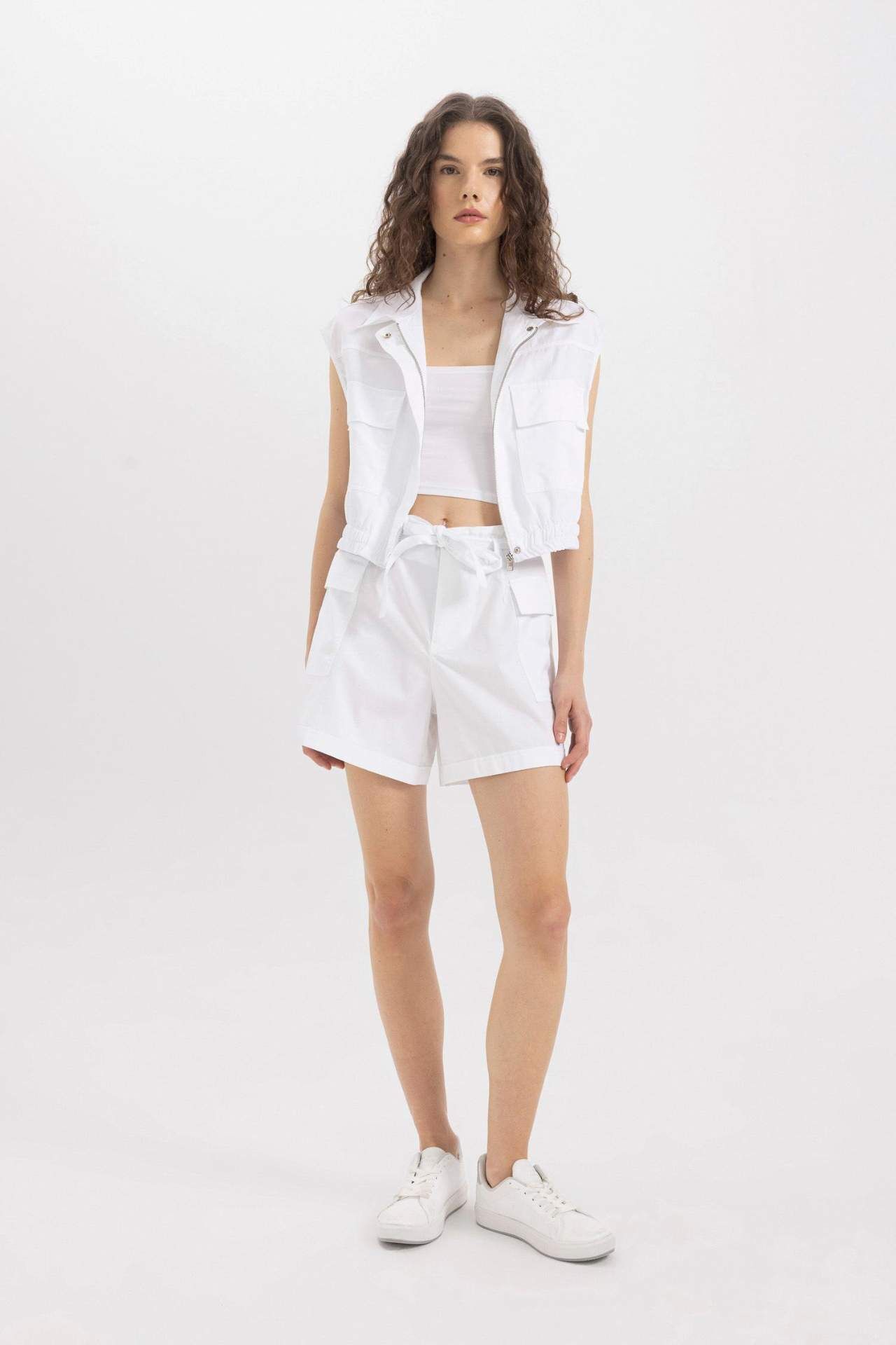 DeFactoFit Paperbag Yüksek Bel Geniş Paça Poplin Şort
