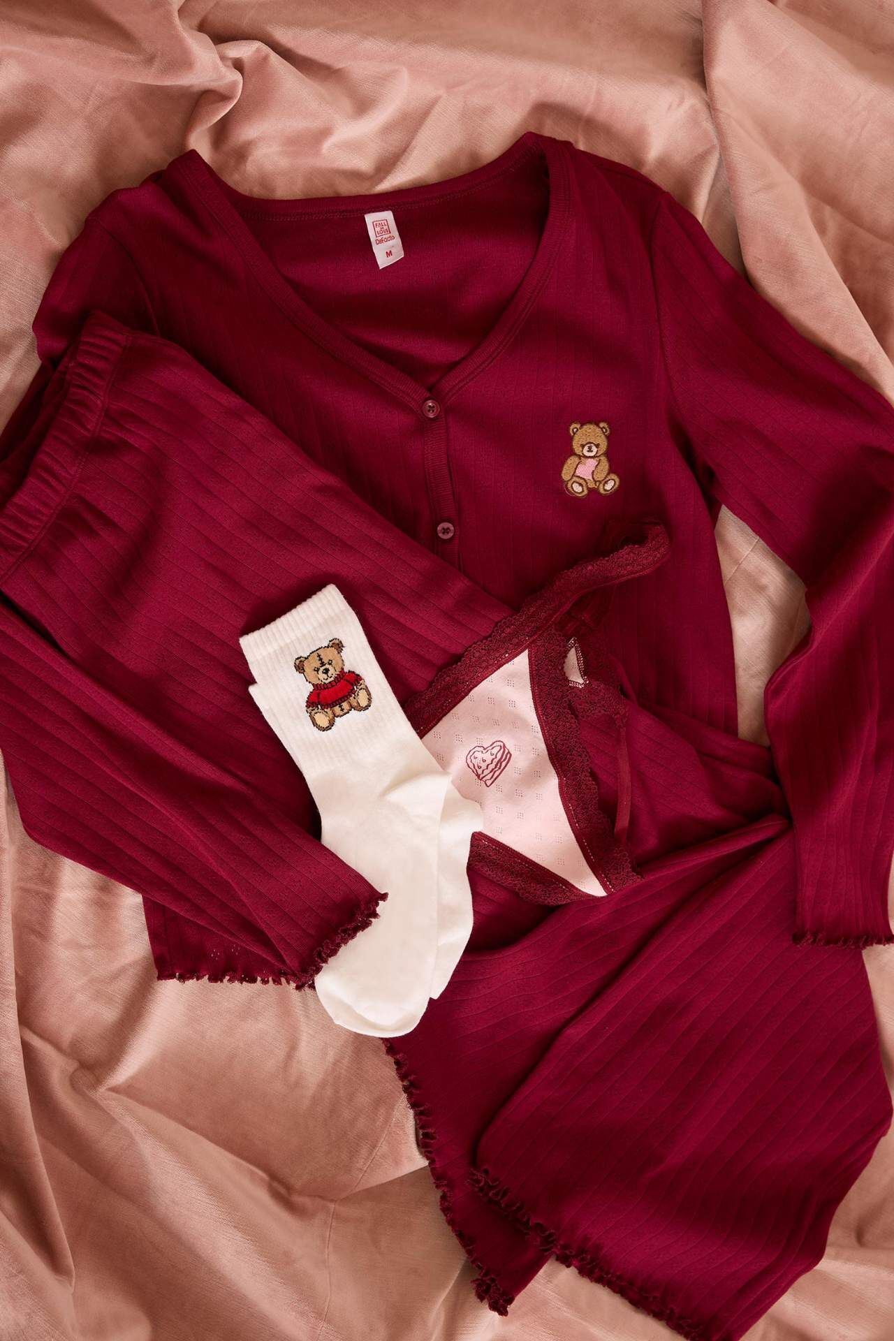 Pijama Takımı Regular Fit Ayıcıklı Uzun Kollu Üst Uzun Alt, yumuşak dokusu ve sevimli ayıcık deseniyle sıcak ve keyifli bir uyku deneyimi sunar. Regular fit kesimi sayesinde rahat hareket imkânı sağlarken, uzun kollu üst ve uzun alt serin havalarda ekstra konfor sağlar. Hem şirin hem de kullanışlı bir pijama takımıdır. Pamuk 100%,Pamuk 100%