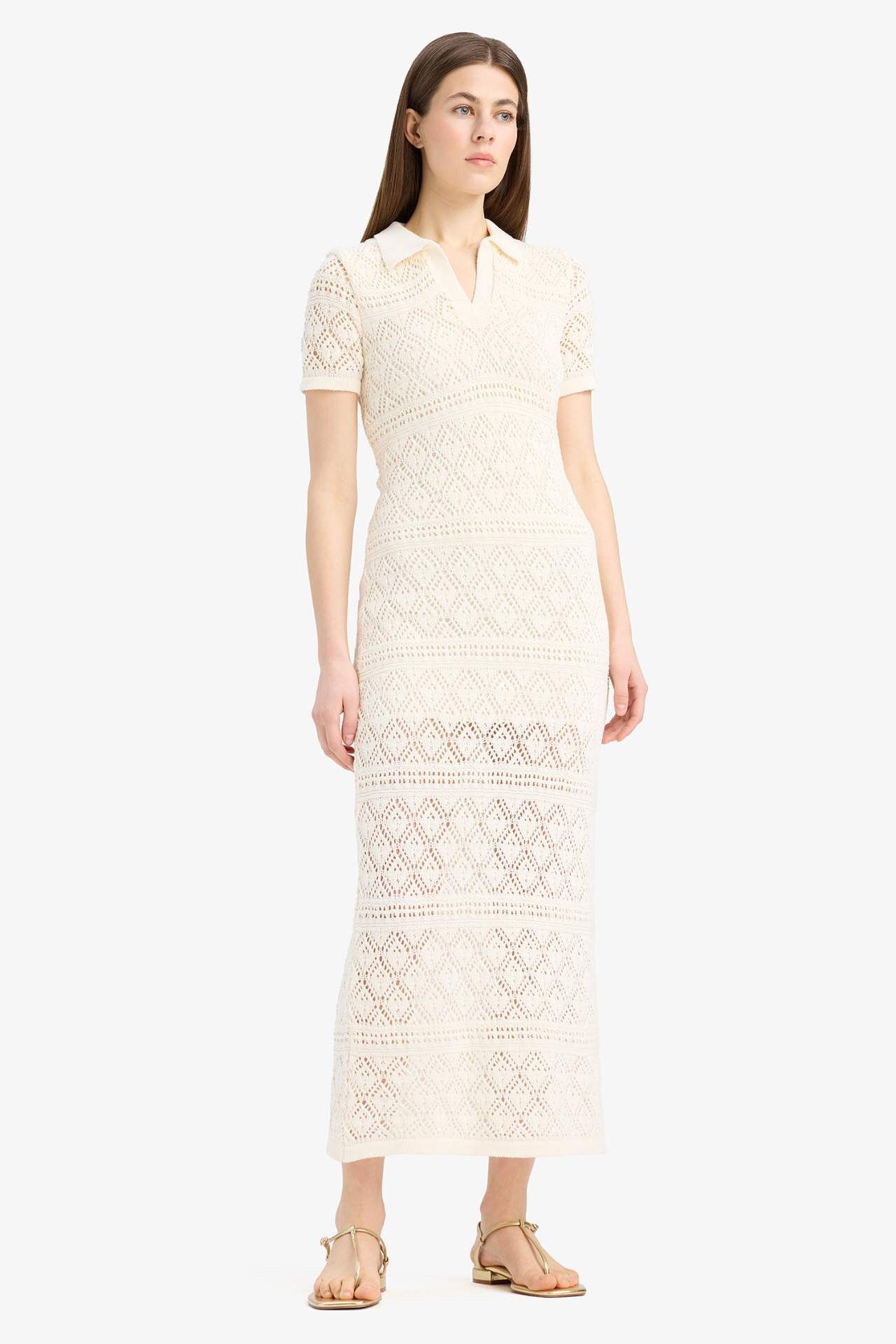 Polo Yaka Kısa Kollu Dantel Maix Elbise