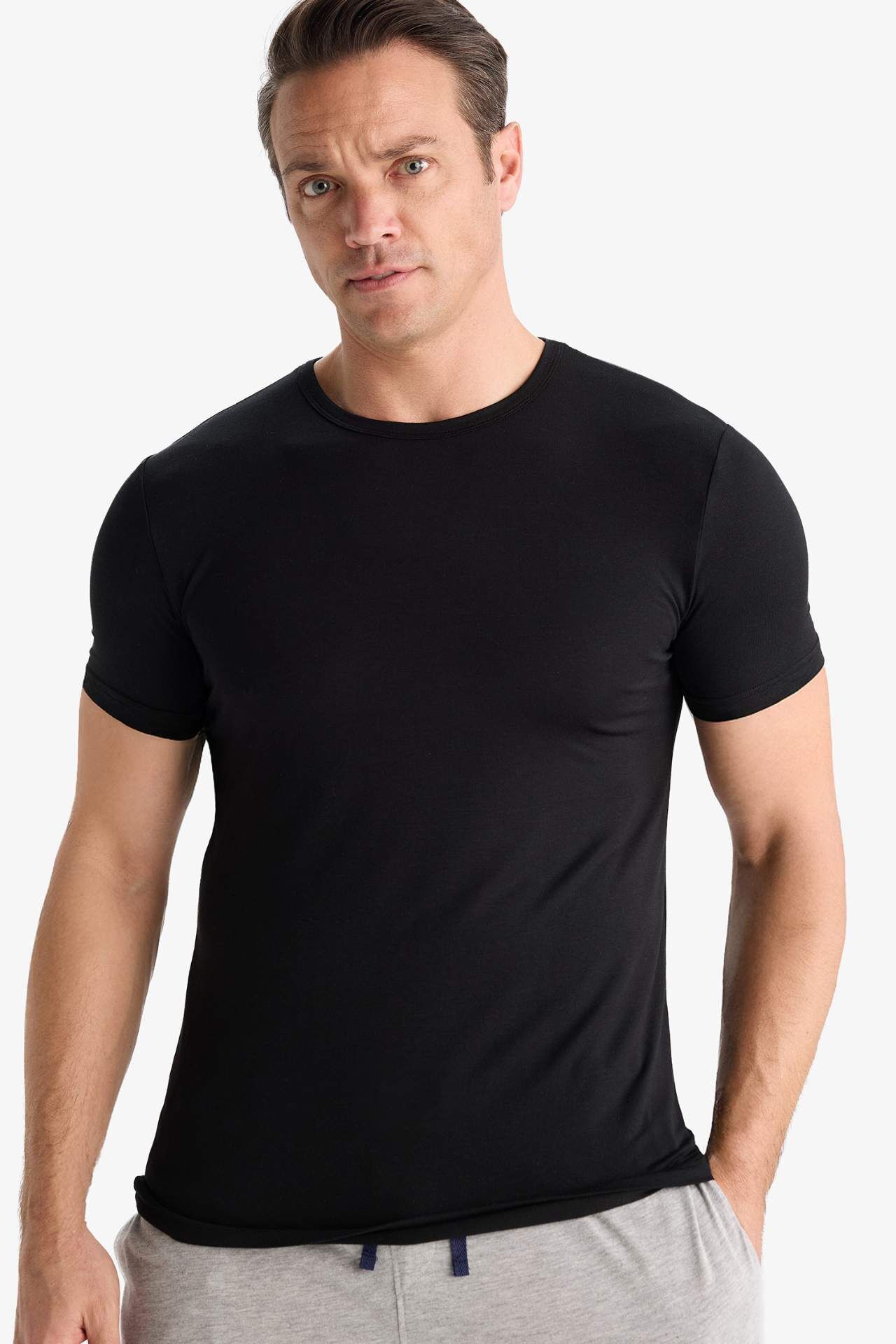 DeFacto Premium Slim Fit Dar Kesim Bisiklet Yaka Modal Üst