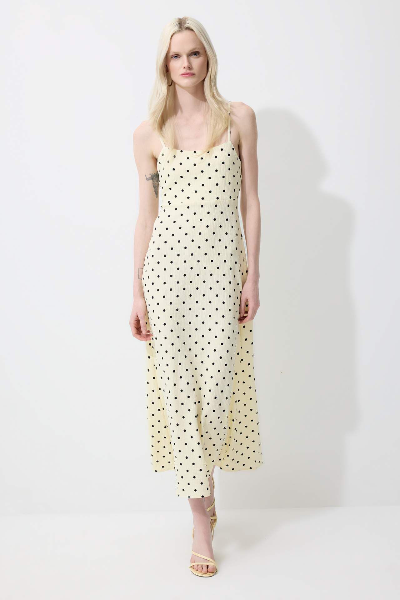 Puantiye Bürümcük Kolsuz Maxi Elbise