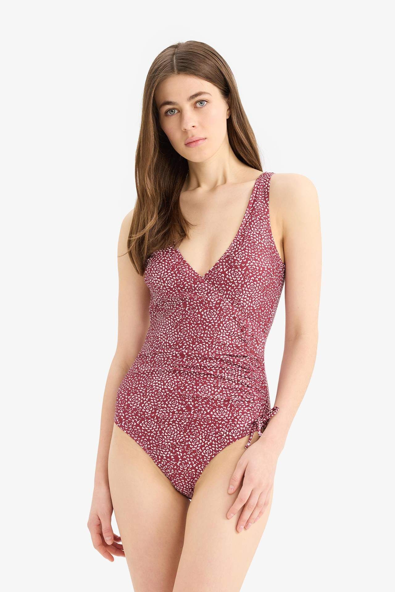 Puantiyeli Yandan Büzgülü Mayo-Fall in Love