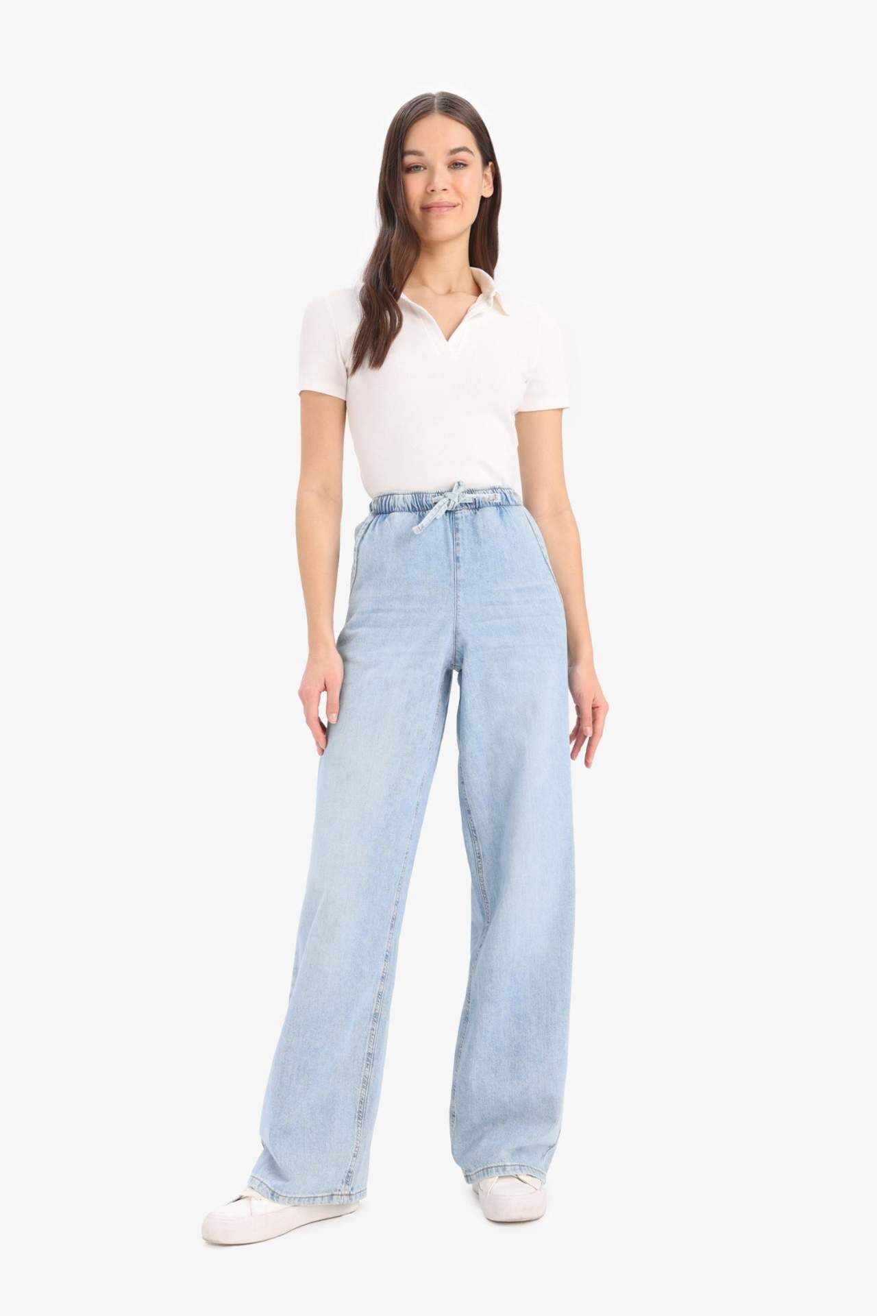 DeFacto Pull On Wide Leg Yüksek Bel Geniş Paça Uzun Yumuşak Jean Pantolon