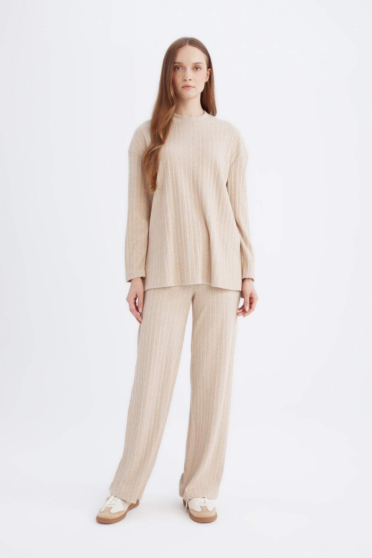 DeFacto Regular Beli Lastikli Basic Düz Fit Fitilli Kaşkorse Geniş Paça Pantolon