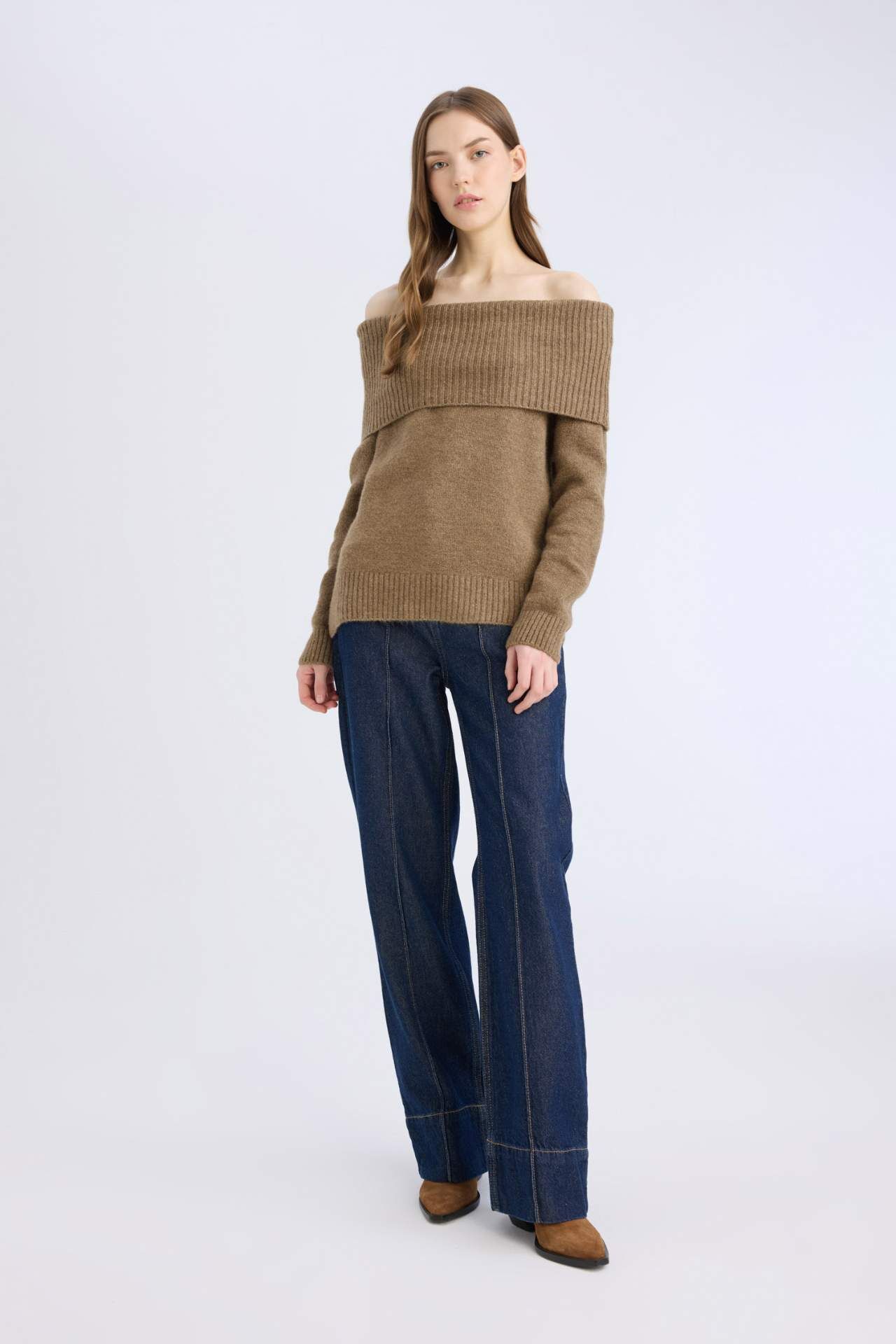 DeFacto Regular Fit Açık Omuz Triko Kazak