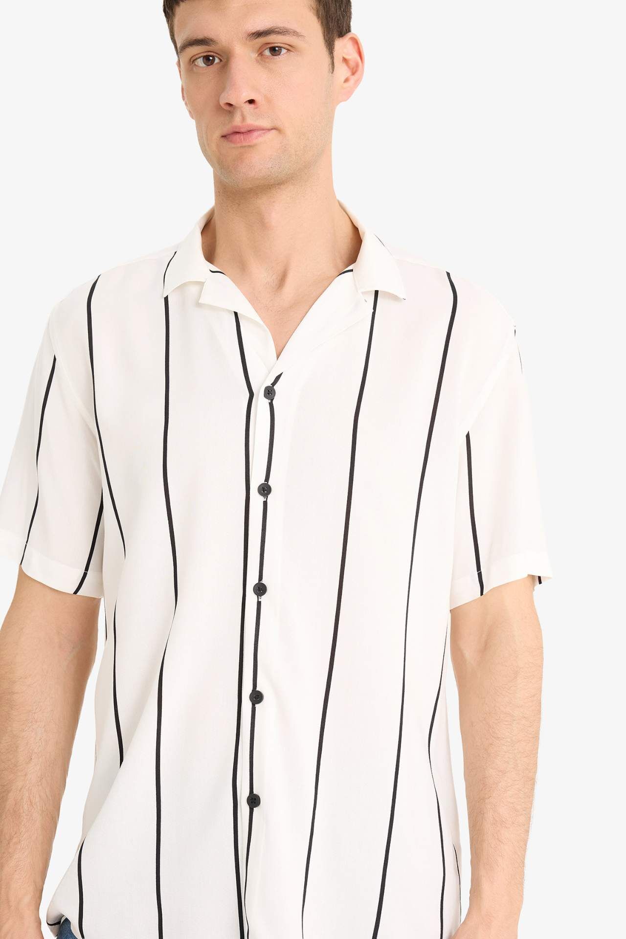 DeFacto Regular Fit Apaş Yaka Baskılı Yazlık Kısa Kollu Gömlek E2559AX25SMWT34