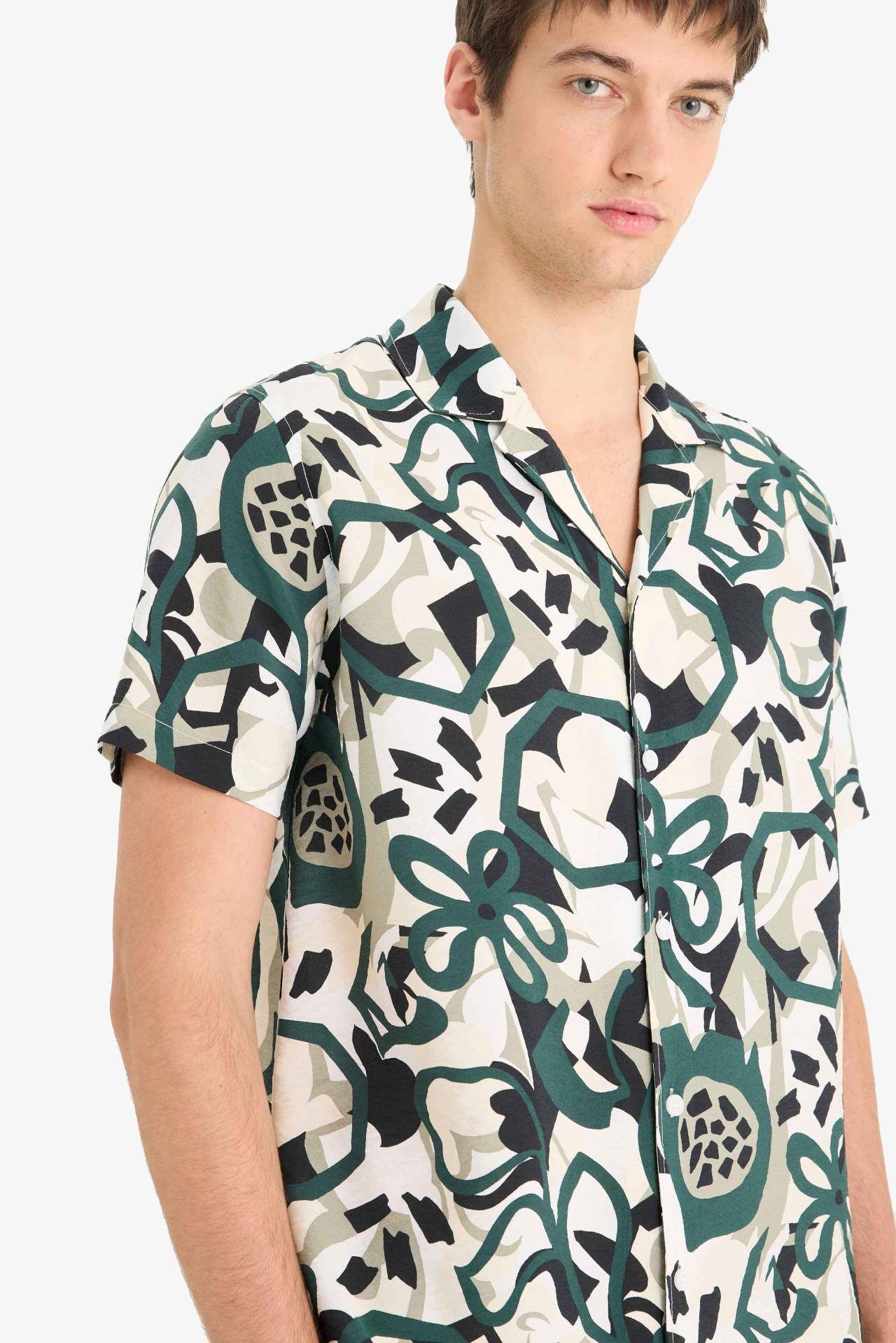 DeFacto Regular Fit Apaş Yaka Desenli Kısa Kollu Gömlek E1271AX25SMGN465