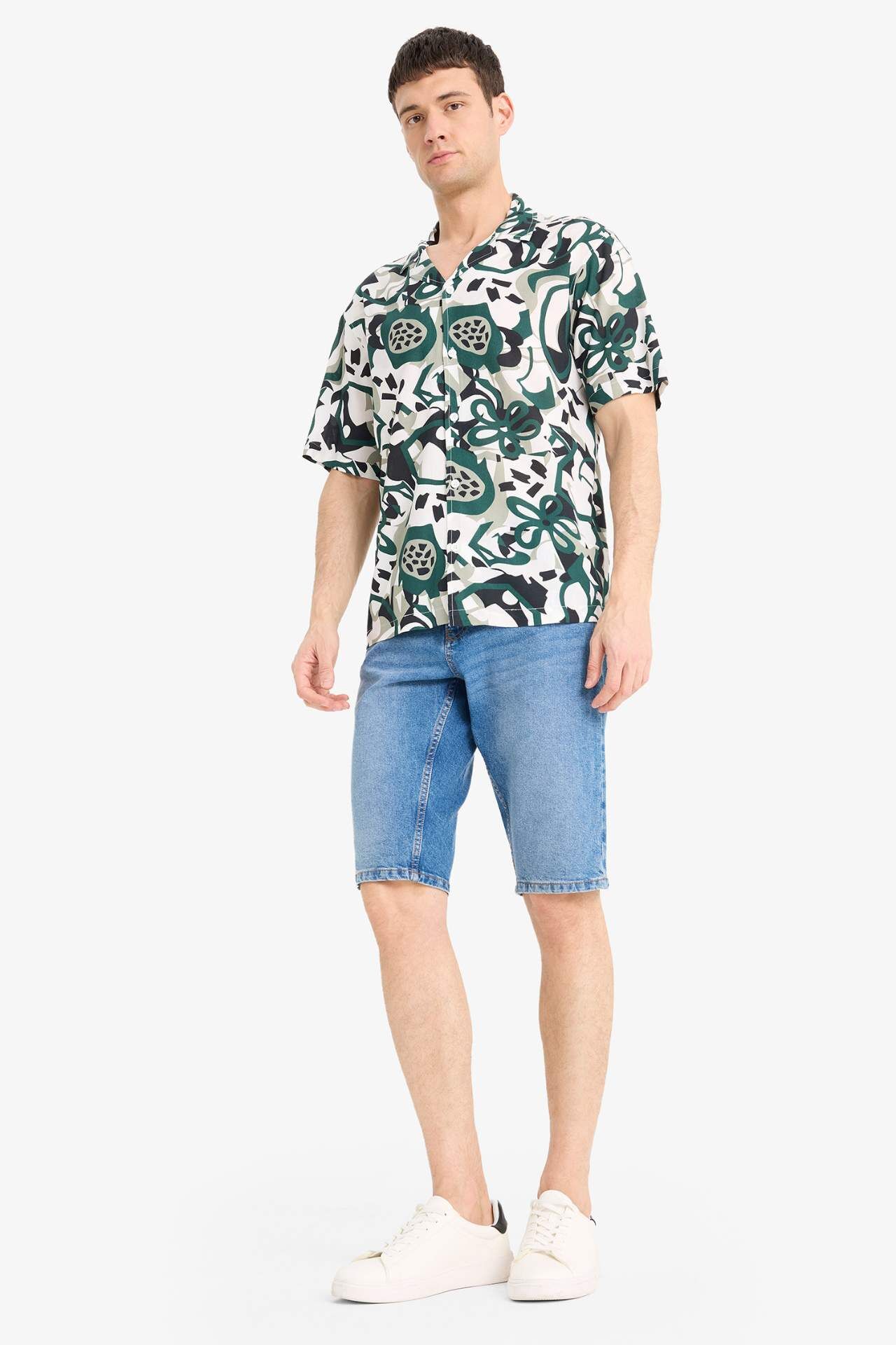 Canlı desenleriyle dikkat çeken bu regular fit gömlek, yaz kombinlerine dinamik bir hava katıyor. Apaş yaka ve kısa kollu tasarımıyla sıcak havalarda ferah ve şık bir görünüm sunar. Viskoz 100%,Viskoz 100%,Viskoz 100%,Viskoz 100%,Viskoz 100% Manken Bedeni: Göğüs: 98 Boy: 1,89 Basen: 98 Bel: 80